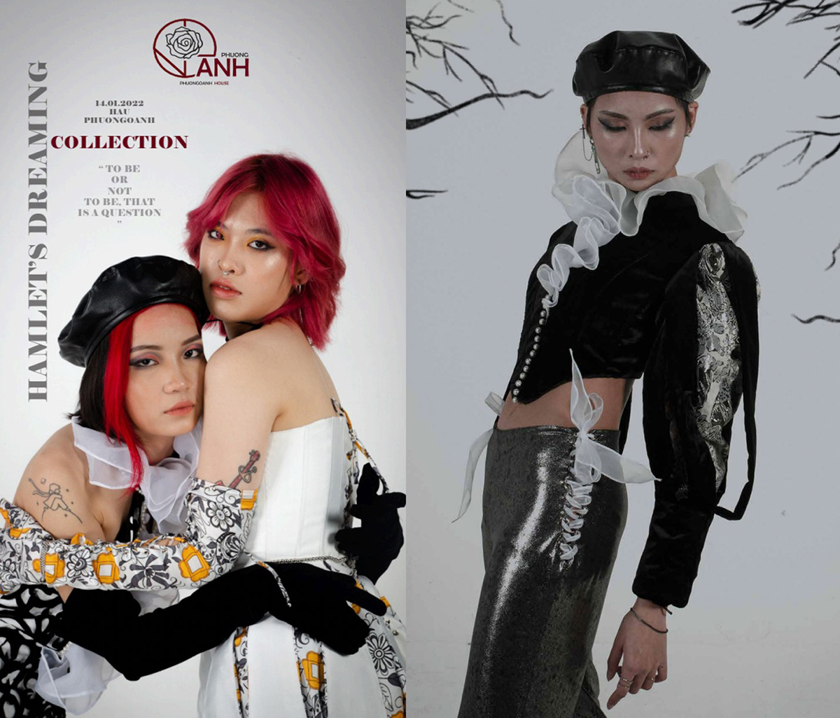 BST Hamlet's dreaming, tác giả Nguyễn Hà Phương Oanh. Thiết kế trang phục dạo phố thu đông lấy ý tưởng từ vở bi kịch Hamlet của đại thi hào William Shakespears. Thông qua BST này, nhà thiết kế mong muốn gửi đến niềm yêu thích văn chương, những giá trị cốt lõi, không sợ nỗi cơ đơn hay buồn đau, mà dũng cảm tiến tới nó và thông qua nó mà kiếm tìm bản thân mình.
