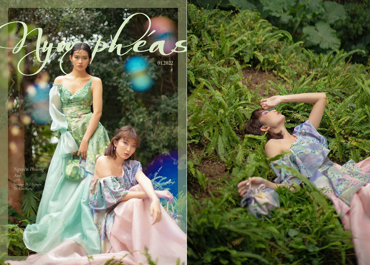 BST Nymphéas, tác giả Nguyễn Phương Anh. Các mẫu trang phục dạ hội cho nữ 18-25 tuổi lấy cảm hứng từ series Hoa súng nước của họa sĩ trường phái ấn tượng người Pháp Claude Monet.