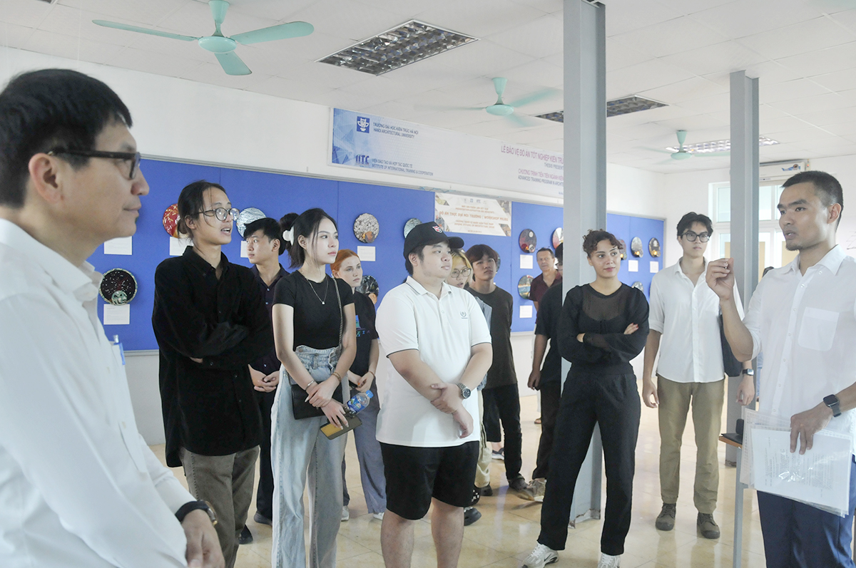 PGS.TS.KTS Nguyễn Tuấn Anh - Phó Hiệu trưởng HAU cho biết: Thực hiện kế hoạch đào tạo năm học 2023 - 2024, Viện Đào tạo và Hợp tác Quốc tế HAU đã tổ chức đào tạo môn học Workshop Môi trường cho lớp Cử nhân Kiến trúc Pháp 04DEEA. Đây là chương trình được Trường kết hợp với các Trường Đại học Kiến trúc Quốc gia Pháp tổ chức đào tạo từ năm 2018. Với tinh thần “Kiến trúc sư của thực địa”, mục tiêu đào tạo gắn liền với thực tiễn và trải nghiệm, thúc đẩy nhận diện và phát huy các giá trị nghề truyền thống của Việt Nam, Workshop là tiền đề để phát triển các hoạt động hợp tác tiếp theo giữa Nhà trường và Công ty An Huy.