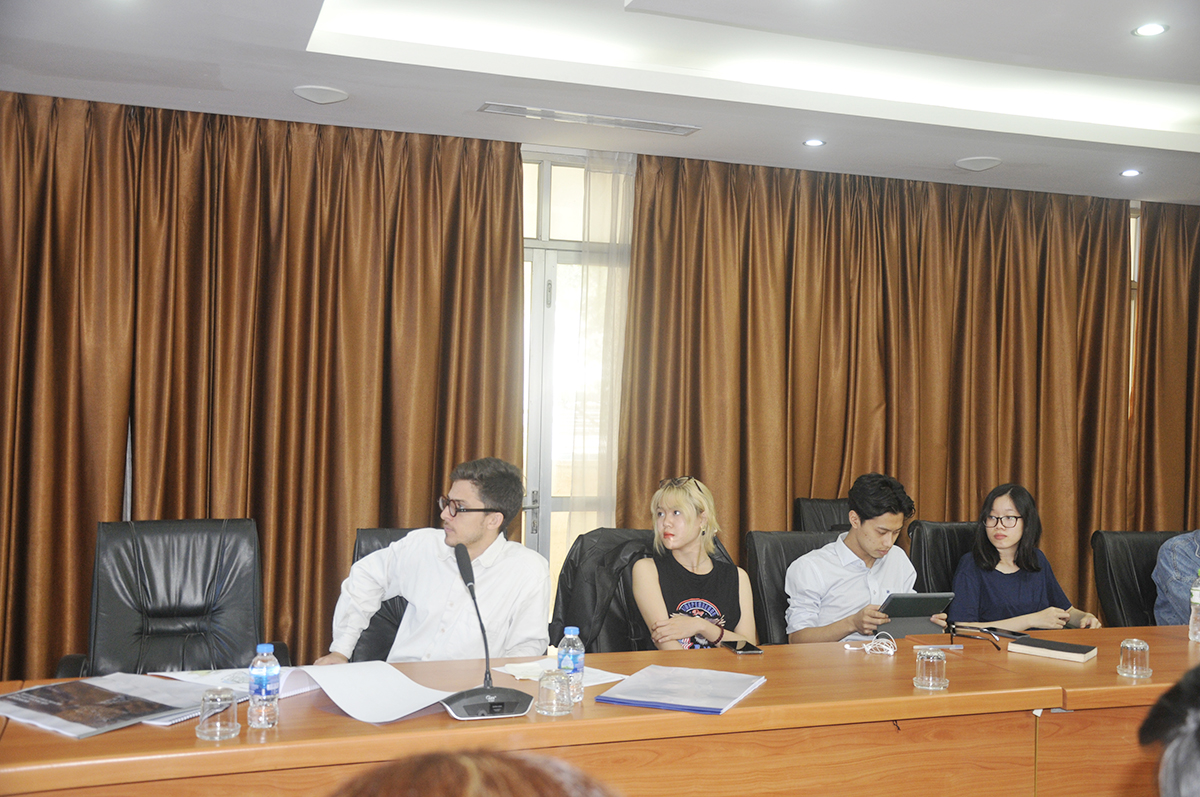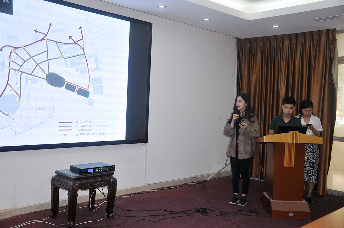 Về phía Trường Đại học Kiến trúc Hà Nội có TS.KTS. Nguyễn Thái Huyền - Phó Viện trưởng Viện Đào tạo và Hợp tác Quốc tế cùng tập thể lớp Thạc sĩ Pháp ngữ DPEA chuyên ngành Thiết kế đô thị, di sản và phát triển bền vững và lớp Cử nhân Kiến trúc Pháp.