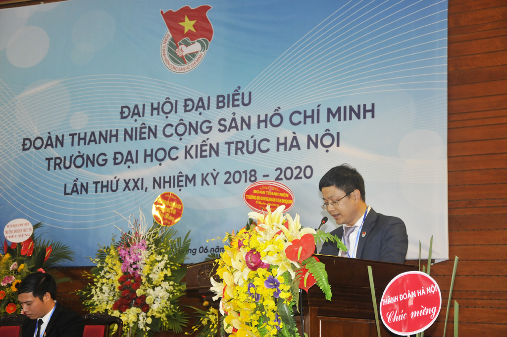 Phát biểu tại Đại hội, thay mặt Đảng ủy, ban Giám hiệu, PGS.TS.KTS. Lê Quân - Bí thư Đảng ủy, Hiệu trưởng Nhà trường ghi nhận và đánh giá cao nỗ lực của toàn thể cán bộ Đoàn, Đoàn viên, thanh niên và sinh viên đối với phong trào Đoàn, phong trào Thanh niên Trường. Nhiệm kỳ 2016 - 2018 vừa qua, Đoàn Thanh niên Trường đã đánh dấu một bước trưởng thành vượt bậc thông qua rất nhiều những công trình, phần việc ý nghĩa …được cụ thể bằng những con số ấn tượng. Bên cạnh đó cũng đặt ra một giai đoạn phát triển với những yếu tố mới của thời đại và của thực tiễn xã hội. Điều này đã và đang đặt ra cho tuổi trẻ Nhà trường trách nhiệm hết sức nặng nề. Hoạt động Đoàn phải đổi mới nội dung, phương thức hoạt động, chủ động tổ chức các phong trào thi đua, động viên Đoàn viên thanh niên phát huy vai trò xung kích, năng động, sáng tạo, phấn đấu hoàn thành xuất sắc nhiệm vụ rèn luyện, học tập, công tác, góp phần xây dựng Trường Đại học Kiến trúc Hà Nội không ngừng lớn mạnh, trở thành Trường Đại học trọng điểm của ngành Xây dựng, đóng góp tích cực vào công tác Đoàn và phong trào thanh niên của Thủ đô và cả nước...