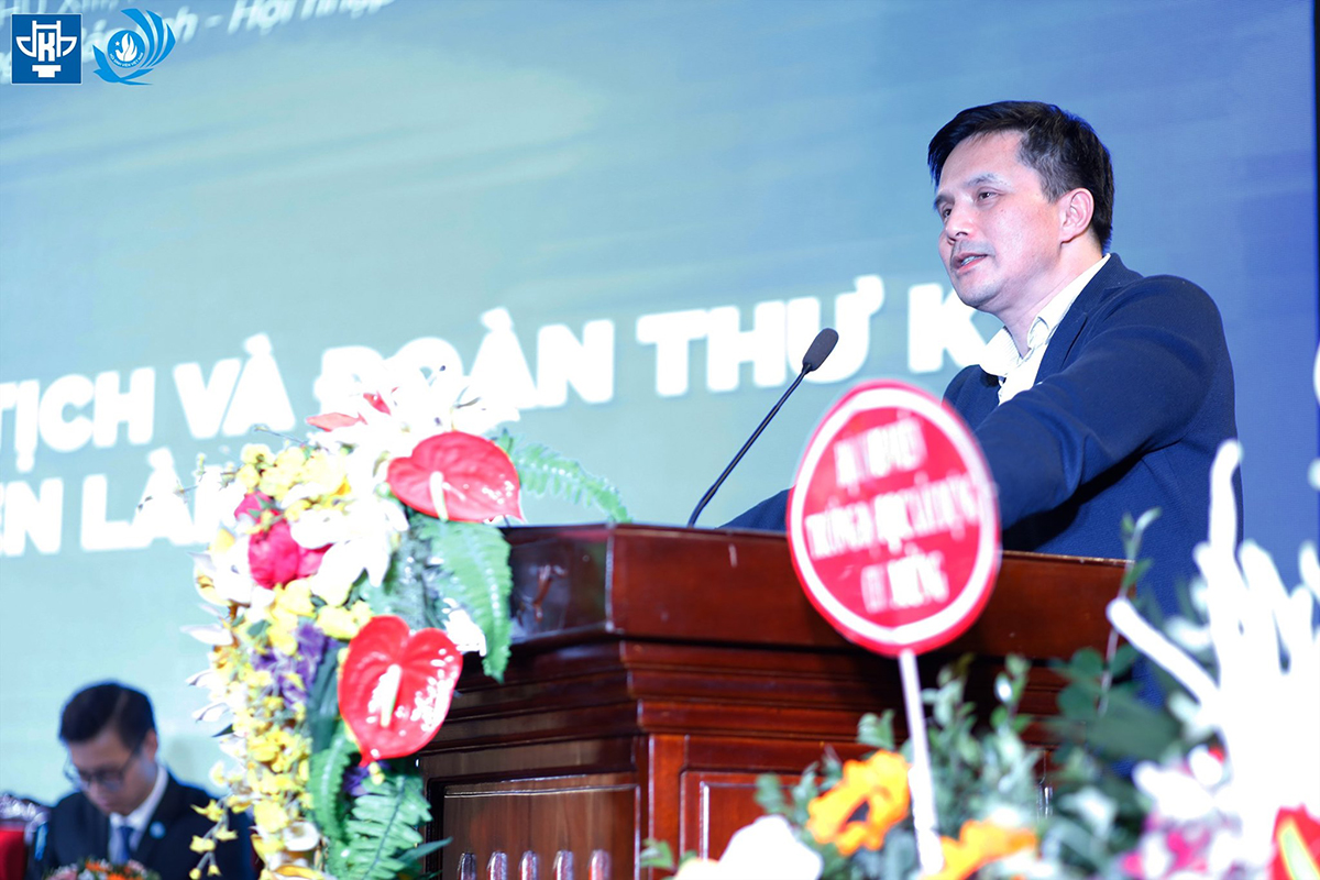 PGS.TS.KTS. Lê Quân - Bí thư Đảng ủy, Hiệu trưởng Nhà trường phát biểu tại Đại hội
