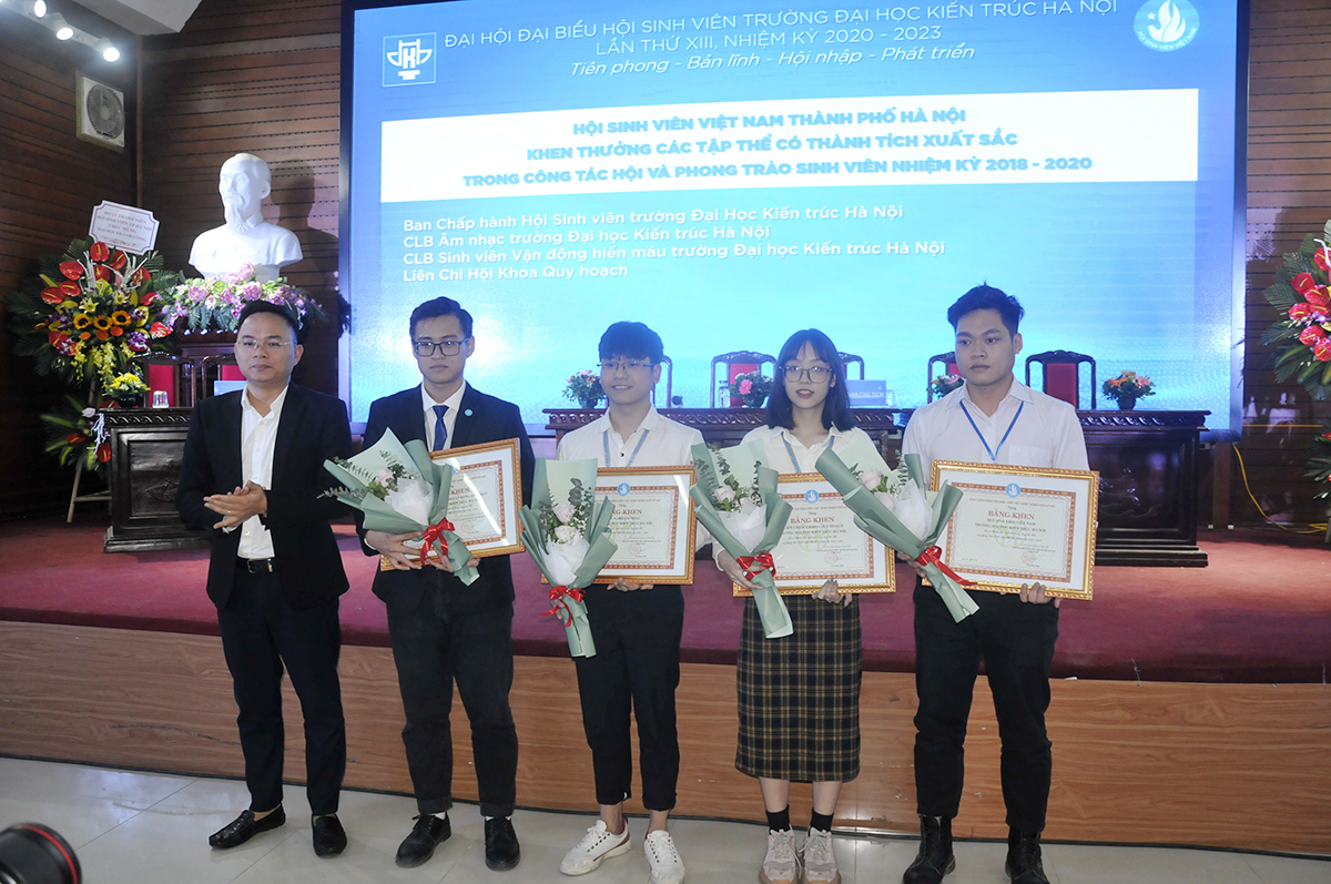 Đại diện Ban chấp hành Hội sinh viên Trường Đại học Kiến trúc Hà Nội khóa XII (nhiệm kỳ 2018 - 2020), đ/c Nguyễn Văn Huy - Chủ tịch Hội sinh viên Trường cảm ơn sự quan tâm của lãnh đạo Thành đoàn Hà Nội, Hội sinh viên TP. Hà Nội; sự quan tâm của các thầy cô trong Đảng ủy, Ban giám hiệu Nhà trường dành cho Hội sinh viên và tập thể sinh viên trong Trường trong nhiệm kỳ qua, giúp Hội hoàn thành xuất sắc mọi nhiệm vụ được giao.
