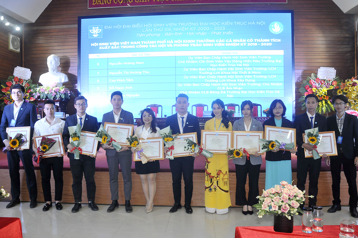 Sau thời gian làm việc khẩn trương, sôi nổi với ý thức trách nhiệm cao, Đại hội đại biểu Hội Sinh viên Trường Đại học Kiến trúc Hà Nội lần thứ XIII (nhiệm kỳ 2020 - 2023) đã hoàn thành tốt đẹp.