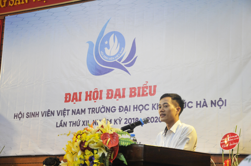 Đồng chí Vũ Văn Hải - Phó Chủ tịch Hội sinh viên Việt Nam Thành phố Hà Nội phát biểu tại Đại hội