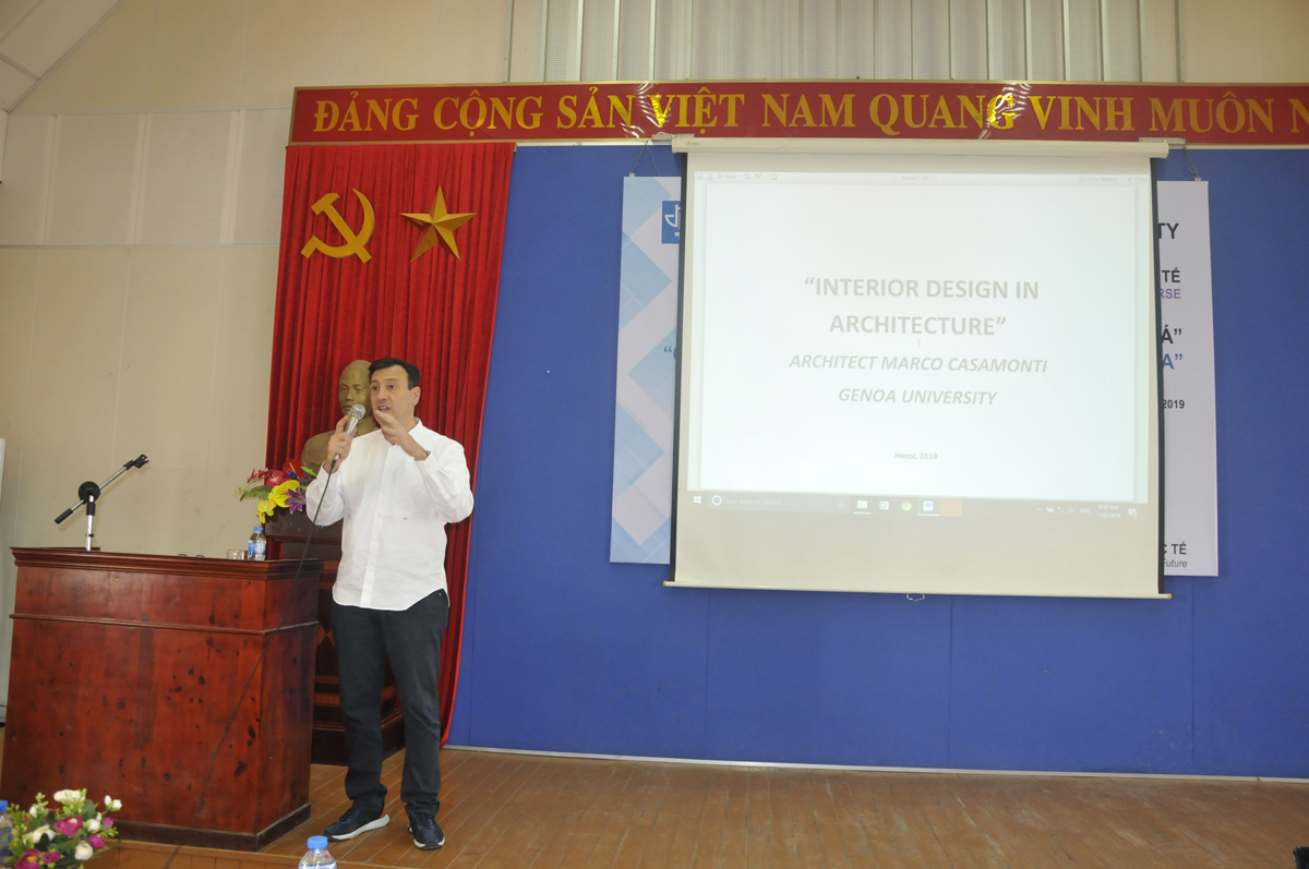 *Cũng sáng cùng ngày tại tầng 9 nhà I, Trường Đại học Kiến trúc Hà Nội, KTS. Marco Casamonti - Người sáng lập Tập đoàn Tư vấn thiết kế Archea Associate Italia, Kiến trúc sư trưởng Tập đoàn Sun Group đã có buổi thuyết trình với chủ đề “Thiết kế và Kiến trúc” với các giảng viên và sinh viên nhà trường. Buổi thuyết trình thu hút nhiều giảng viên kỳ cựu, học viên, sinh viên Việt Nam và Quốc tế đang giảng dạy, theo học tại trường.