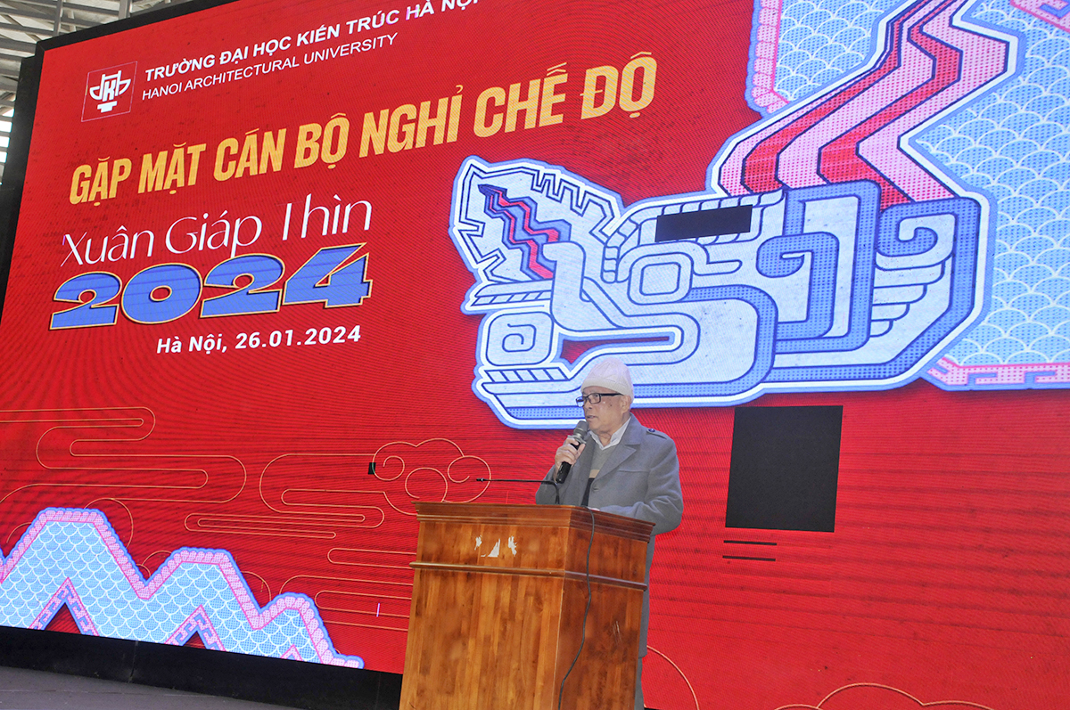 Nhân dịp đầu năm mới 2024 và chuẩn bị đón Xuân Giáp Thìn, thay mặt tập thể lãnh đạo và toàn thể cán bộ, giảng viên, học viên và sinh viên trong toàn Trường, PGS.TS.KTS. Lê Quân gửi lời chúc mừng năm mới, chúc sức khoẻ tới các thế hệ nhà giáo, cán bộ viên chức đã nghỉ hưu cùng lời chúc mừng năm mới an khang, thịnh vượng, gia đình hạnh phúc. Mong các thầy cô tiếp tục đóng góp cho sự nghiệp giáo dục, đào tạo và phát triển của Nhà trường trong thời gian tới.