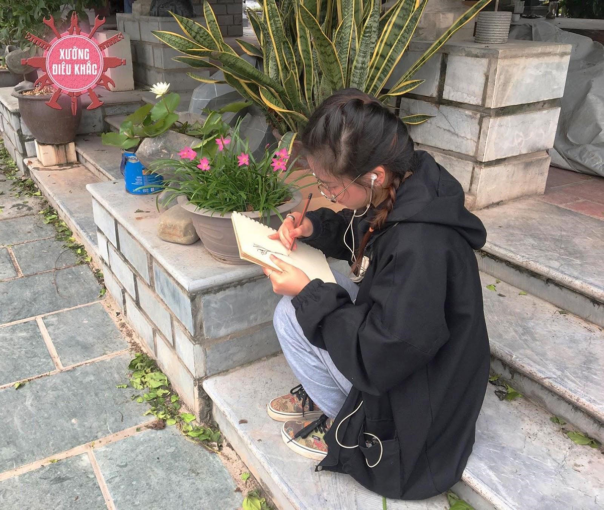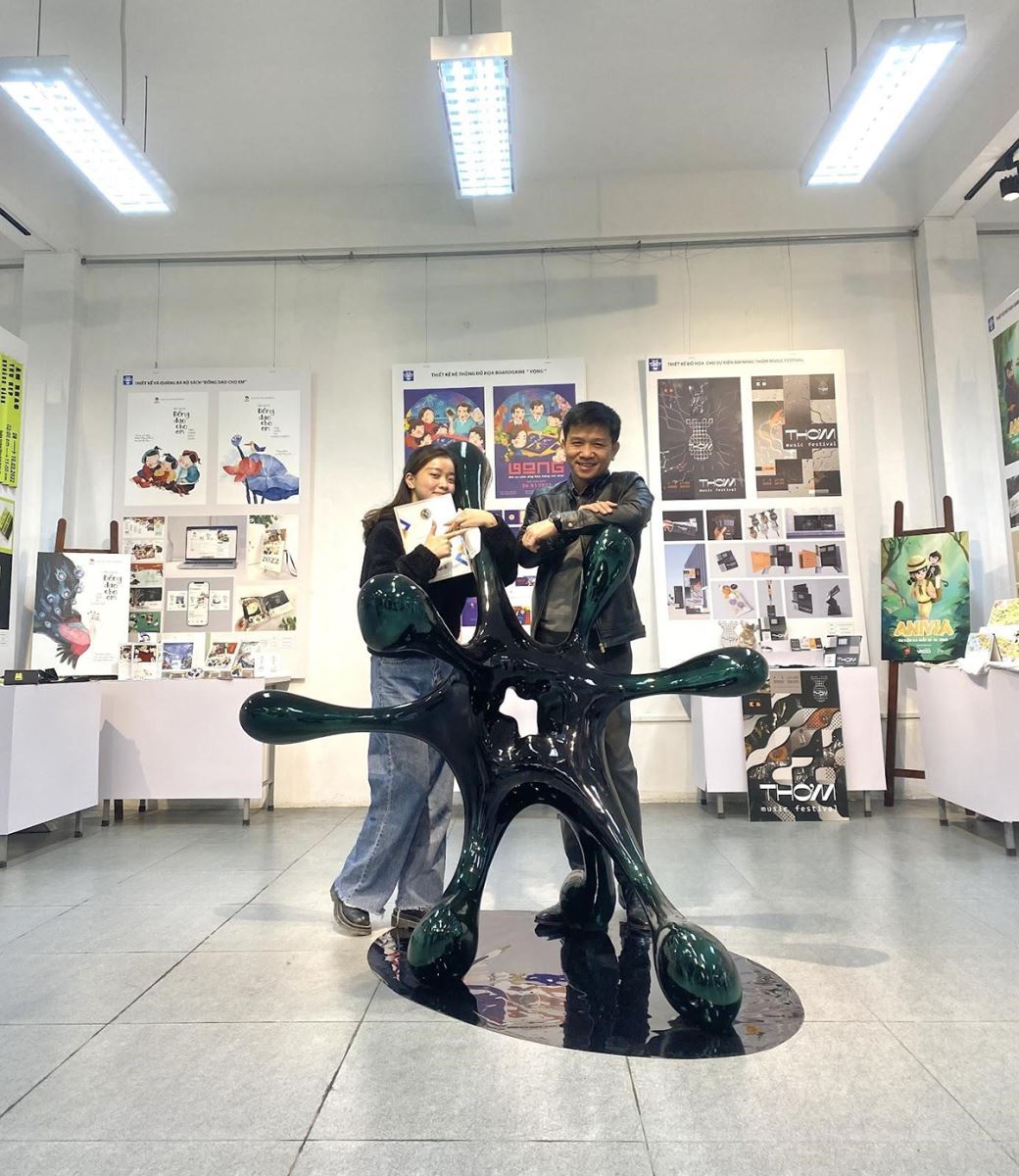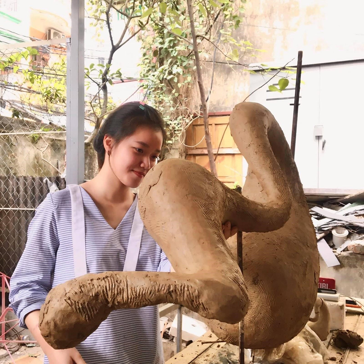Chia sẻ về hành trình quyết tâm gắn bó với ngành Điêu khắc, Khánh Huyền kể: “Câu chuyện bắt đầu từ năm mình học lớp 11. Khi đó, mình còn định hướng sẽ là cô giáo. Nhưng một lần, vô tình xem được một tác phẩm điêu khắc, mình thấy rất đẹp và thú vị và mong muốn mình làm được những tác phẩm như vậy. Thế rồi, mình quyết định sẽ theo đuổi điêu khắc và thi vào trường Kiến Trúc”.
