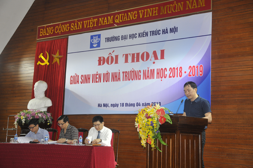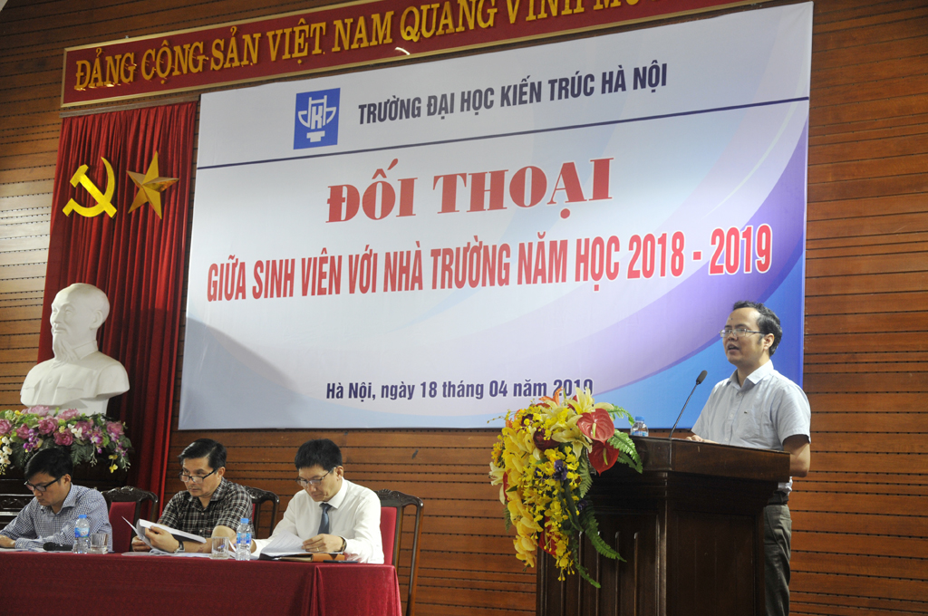 Phát biểu tại buổi đối thoại, PGS.TS.KTS. Lê Quân cho biết về tình hình thực tế cũng như những điều kiện về cơ sở vật chất, số lượng sinh viên đang đào tạo, thực trạng của việc đào tạo... Hiệu trưởng cũng đánh giá cao và biểu dương tinh thần trách nhiệm về những ý kiến trao đổi của sinh viên. Các ý kiến, đề xuất của sinh viên là cơ sở quan trọng để nhà trường tiếp tục xem xét, điều chỉnh, tìm ra những giải pháp phù hợp nhất trong bối cảnh phát triển mới, nhằm tiếp tục xây dựng Trường Đại học Kiến trúc Hà Nội ngày càng phát triển.