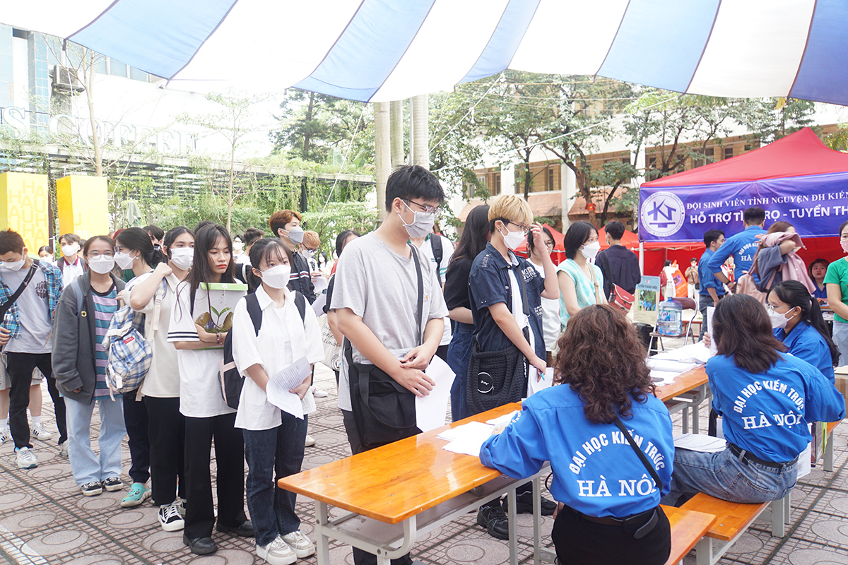 Đoàn Thanh niên Cộng sản Hồ Chí Minh, Hội sinh viên, Đội sinh viên tình nguyện Trường Đại học Kiến trúc Hà Nội cũng tích cực chỉ dẫn cho các sinh viên ở cổng trường, dọc sân trường và trong nhà thi đấu… để giúp tân sinh viên dễ dàng hơn trong việc làm thủ tục nhập học. Trong màu áo Thanh niên Việt Nam, nhiều sinh viên tình nguyện đứng ở khu vực nhà thi đấu, sân nhà H trong tư thế sẵn sàng “tác chiến” trước mọi câu hỏi, khó khăn mà phụ huynh, sinh viên nhập học gặp phải.