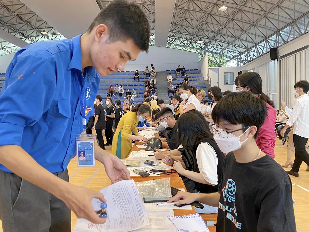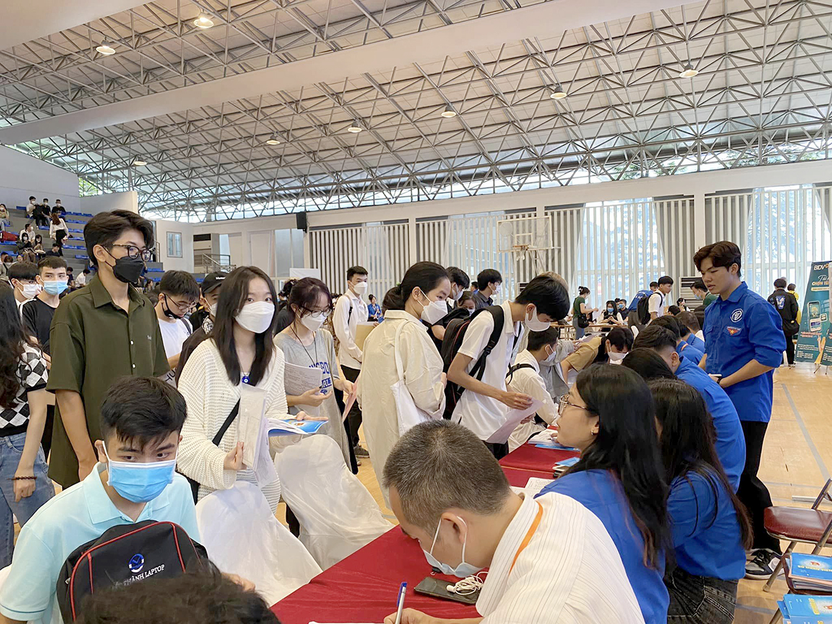Để tạo điều kiện thuận lợi cho các tân sinh viên đến nhập học, Nhà trường xây dựng kế hoạch tiếp đón chu đáo, bố trí tiếp đón tân sinh viên trong khuôn viên của nhà thi đấu và sân nhà H. Các điểm làm thủ tục được phân chia một cách khoa học (bàn đóng bảo hiểm thân thể, bàn đóng bảo hiểm y tế, bàn giải quyết diện chính sách…) giúp cho các em có thể làm thủ tục nhanh chóng, đơn giản nhất.