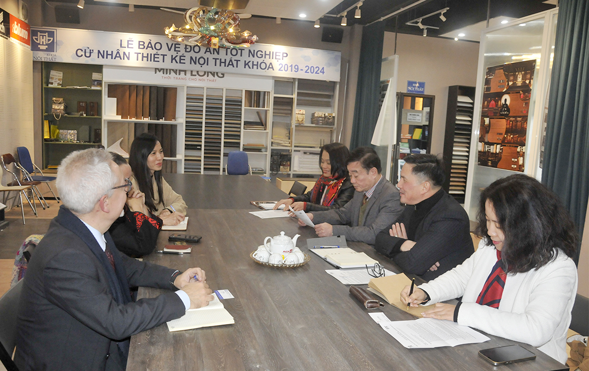 Tại buổi làm việc, PGS.TS.KTS. Lê Quân gửi lời chúc mừng nhiệm kỳ đầu tiên của ngài Tuỳ viên tại Việt Nam và giới thiệu về quá trình hợp tác đào tạo cũng như thành quả sau hơn 20 năm với các Trường đối tác Pháp, trong đó có hệ thống các chương trình liên kết đào tạo về Kiến trúc LMD với Khối Liên minh các Trường Đại học Kiến trúc Quốc gia Pháp. Nhà trường đang thúc đẩy chương trình đào tạo Tiến sĩ đồng hướng dẫn (doctorat en cotutel) cùng các dự án nghiên cứu khoa học có sự hỗ trợ và hợp tác với các tổ chức AUF, AFD, IRD, Đại sứ quán Pháp tại Việt Nam.