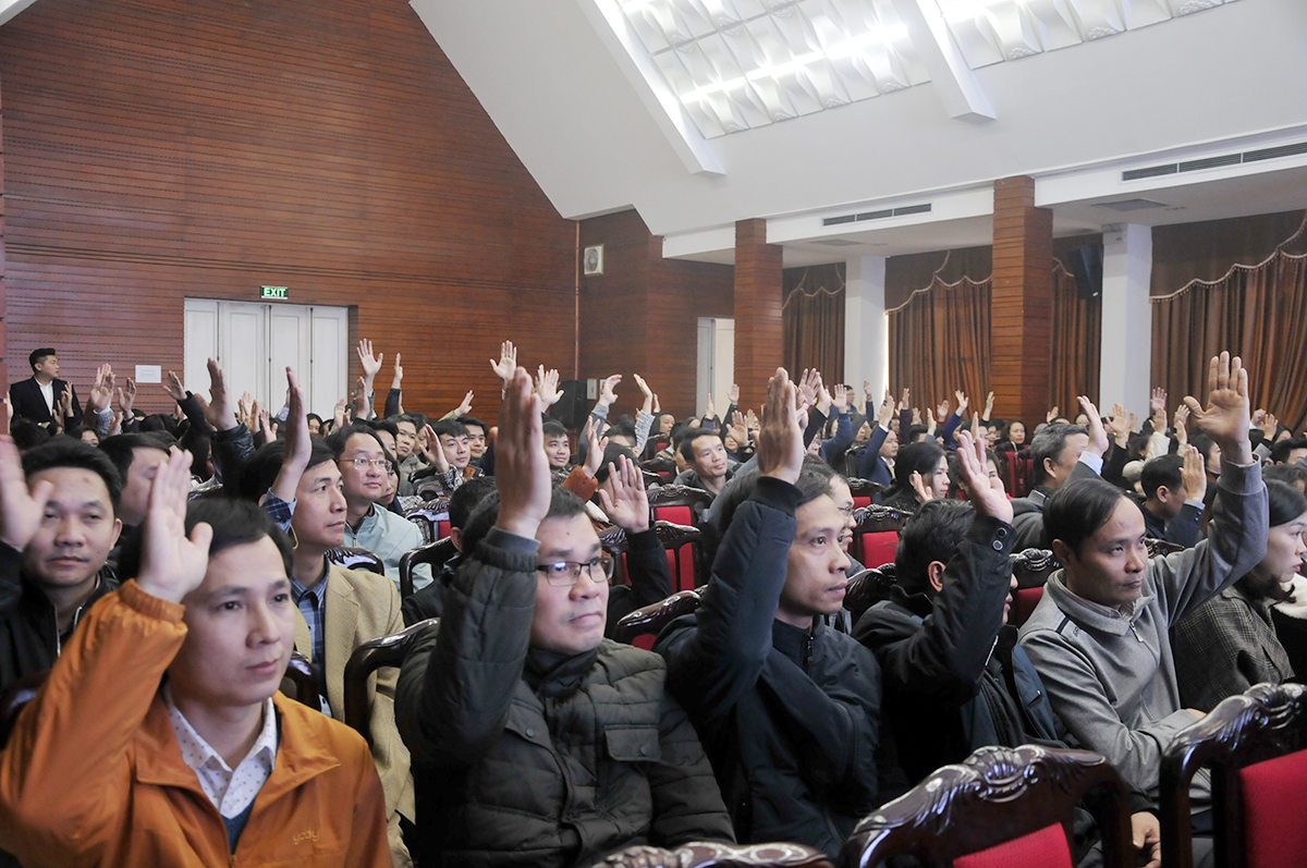 Ở phần mở đầu; Hội nghị đã tiến hành biểu quyết và bầu ra Đoàn Chủ tịch gồm 3 đồng chí để điều hành và đoàn thư ký gồm 2 đồng chí.