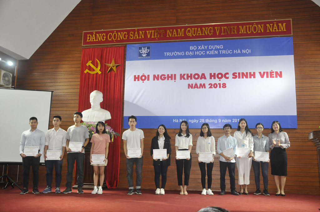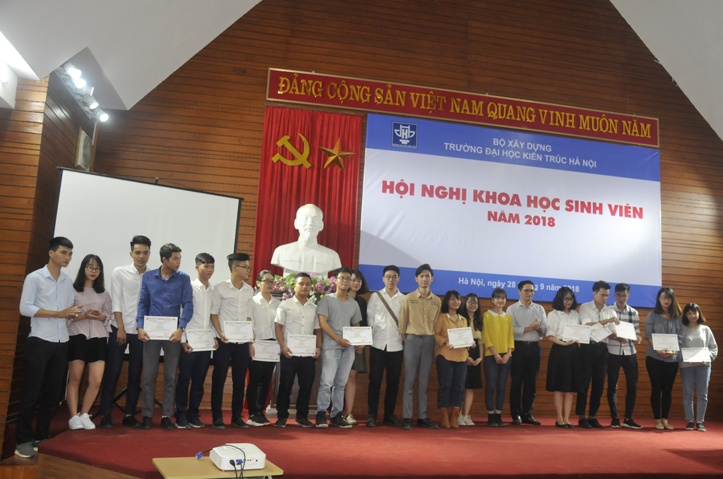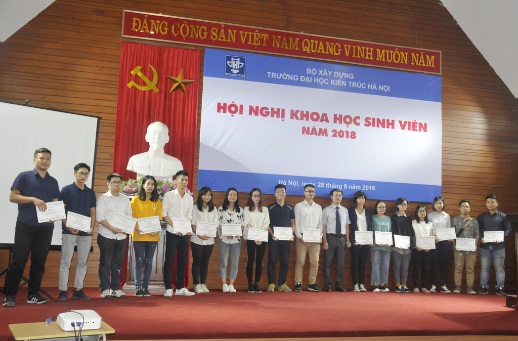 Thừa lệnh Hiệu trưởng, Th.S. Trần Thị Thu Thủy - Phó Trưởng phòng Khoa học Công nghệ đã công bố Quyết định giải thưởng “Sinh viên nghiên cứu khoa học” năm 2017 của Bộ Giáo dục và Đào tạo; Quyết định giải thưởng “Sinh viên nghiên cứu khoa học năm học 2017 - 2018 của Trường Đại học Kiến trúc Hà Nội. Đại diện lãnh đạoBộ Giáo dục và Đào tạo cùng Ban Giám hiệu Nhà trường đã trao phần thưởng cho những giảng viên, sinh viên có thành tích xuất sắc.