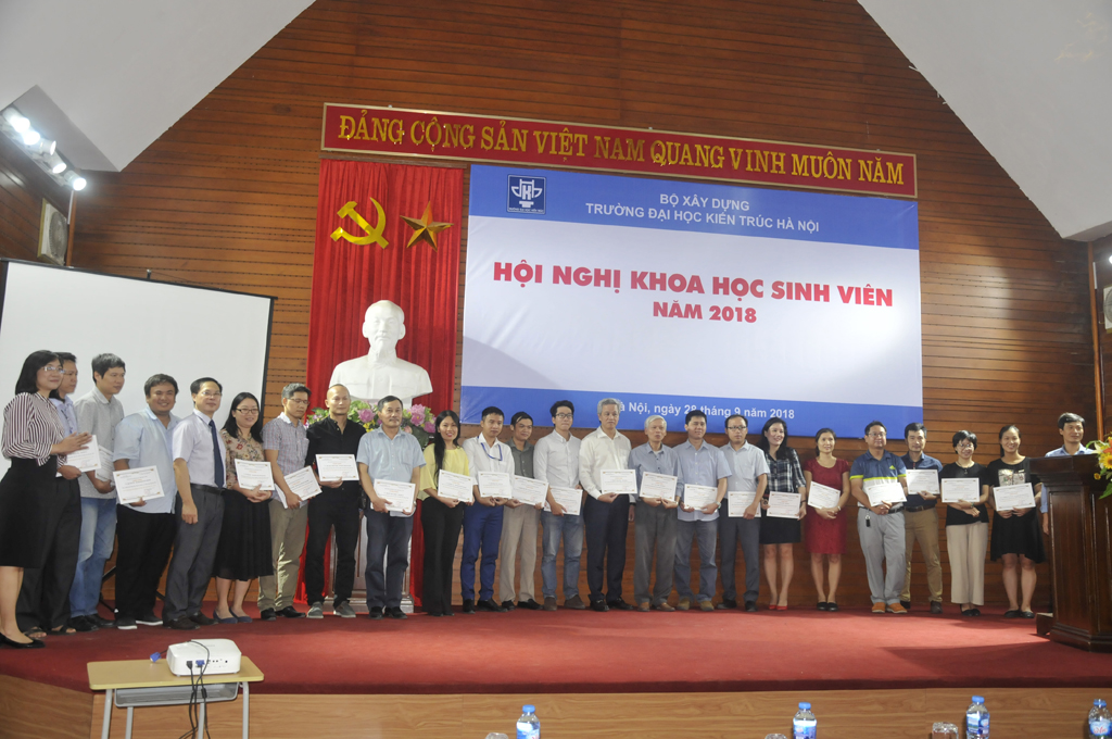 Về phía Trường Đại học Kiến trúc Hà Nội có PGS.TS.KTS. Lê Quân - Hiệu trưởng Nhà trường; các Phó Hiệu trưởng: TS.KTS. Ngô Thị Kim Dung, PGS.TS.KTS. Nguyễn Tuấn Anh; Chủ tịch Hội đồng trường, Trưởng phòng Đào tạo- PGS.TS.KTS. Phạm Trọng Thuật -; lãnh đạo các Khoa, Trung tâm, Phòng ban chức năng trong Trường, các giảng viên và các nhóm sinh viên có thành tích nghiên cứu khoa học năm học 2017 - 2018 cùng toàn thể các nhóm sinh viên thực hiện đề tài khoa học năm học 2018 - 2019.