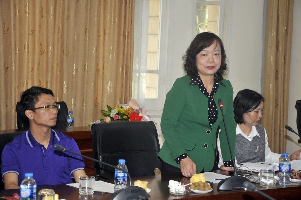Đ/c. Nguyễn Thu Hằng - Phó trưởng Ban tổ chức Liên đoàn Lao động thành phố Hà Nội phát biểu tại hội nghị