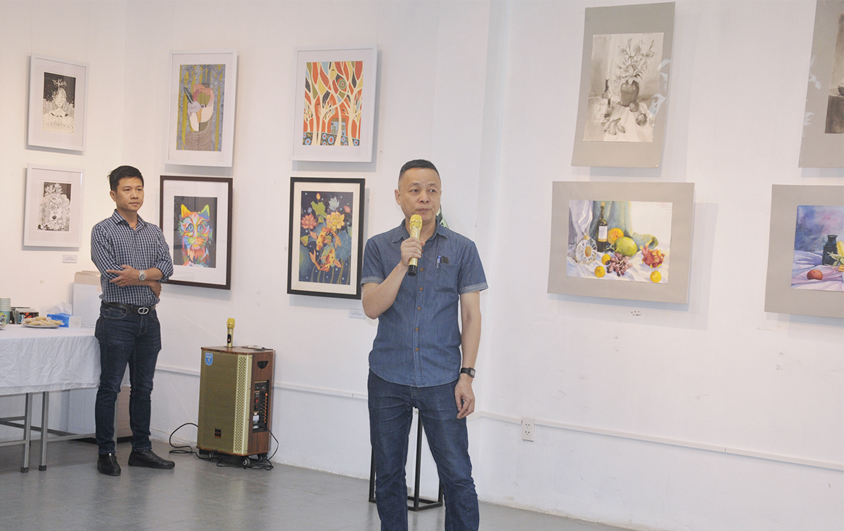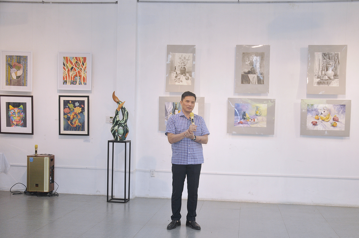 Hoạ sĩ Lê Minh Hải - Trưởng Bộ môn Mỹ thuật cơ bản phát biểu tại triển lãm