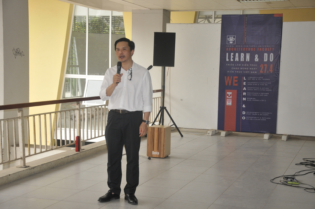 Thay mặt lãnh đạo nhà trường, PGS.TS.KTS. Lê Quân gửi tới các thầy cô, các kiến trúc sư lời chúc mừng nhân kỷ niệm 71 năm thành lập Hội Kiến trúc sư Việt Nam, cảm ơn sự quan tâm của lãnh đạo Bộ Xây dựng, Hội Mỹ thuật Việt Nam, Hội Kiến trúc sư Việt Nam, đặc biệt là nhiệt huyết sáng tạo nghệ thuật của các giảng viên và các em sinh viên… góp phần tạo nên sự thành công của triển lãm.