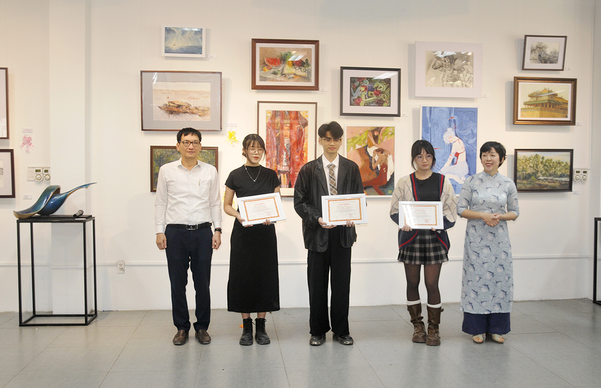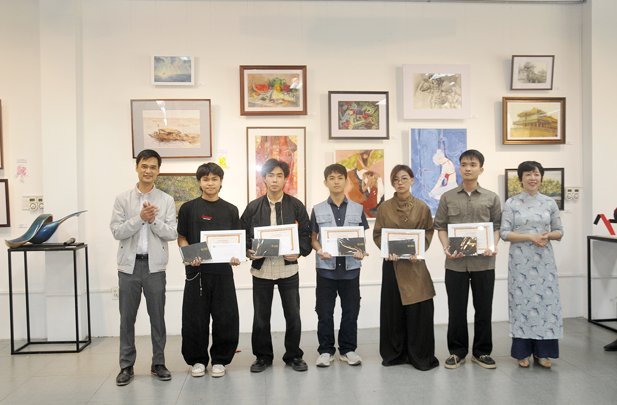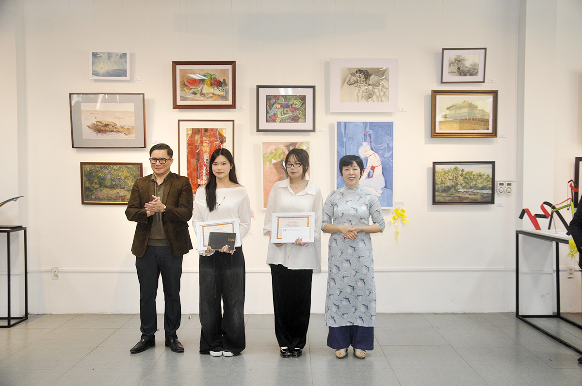 Sự kiện cũng trao 02 giải Nhất, 03 giải Nhì, 05 giải Ba cho các em sinh viên đạt giải cuộc thi Triển lãm Mỹ thuật sinh viên Việt Nam 2025. Ngoài ra, các nhà tài trợ: CLB Nghệ sĩ trẻ - Hội Mỹ thuật Việt Nam, Công ty Cổ phần Gcool, Công ty TNHH Trí Minh Takeyo cũng trao tặng thưởng cho những tác phẩm xuất sắc trưng bày tại triển lãm.