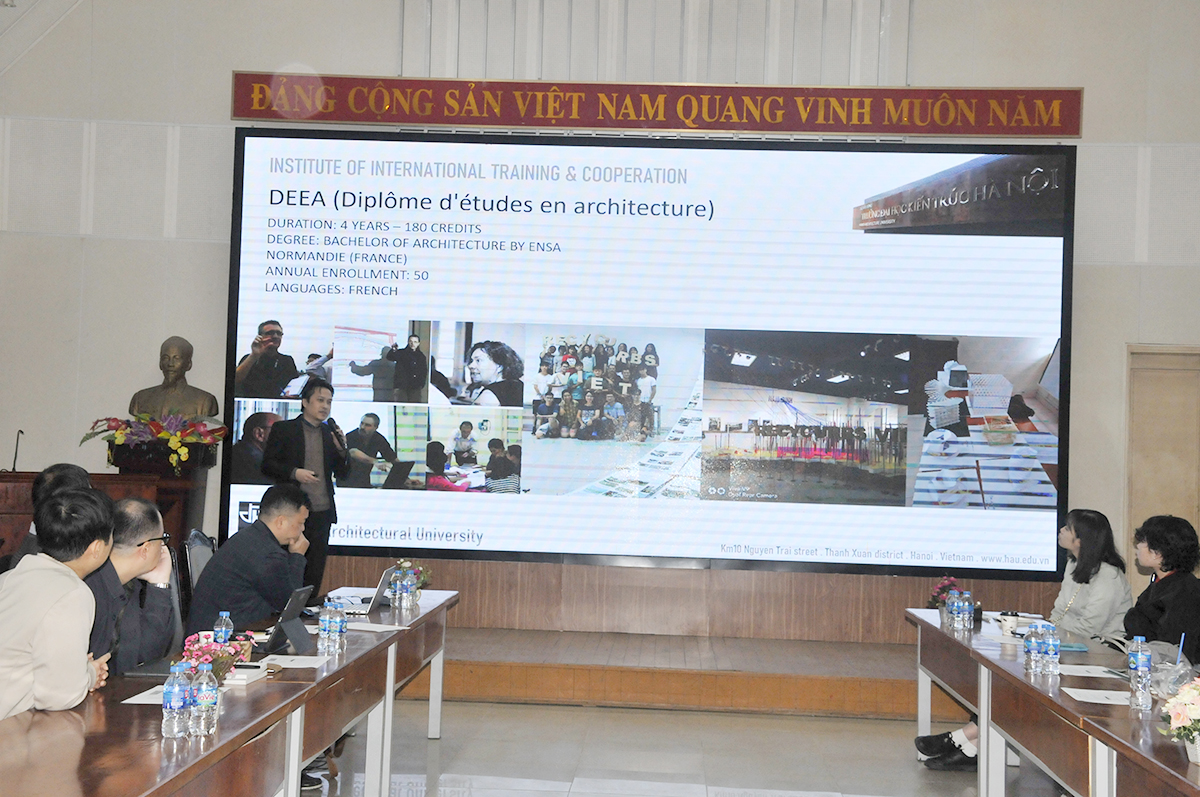 Phát biểu khai mạc workshop, PGS.TS.KTS. Lê Quân - Hiệu trưởng HAU đánh giá cao và cho rằng workshop "Đi tìm bản sắc kiến trúc Việt Nam” tạo điều kiện cho sinh viên của hai bên được giao lưu, học hỏi, mở rộng kiến thức, được trải nghiệm, thực hành các kỹ năng nghiên cứu, thiết kế đồ án. Đây cũng là cơ hội tốt để các bạn sinh viên Nhật Bản được tìm hiểu về văn hóa, kiến trúc và con người Việt Nam thông qua các hoạt động khảo sát thực tế tại các khu tập thể, làng đô thị và phố cổ Hà Nội.