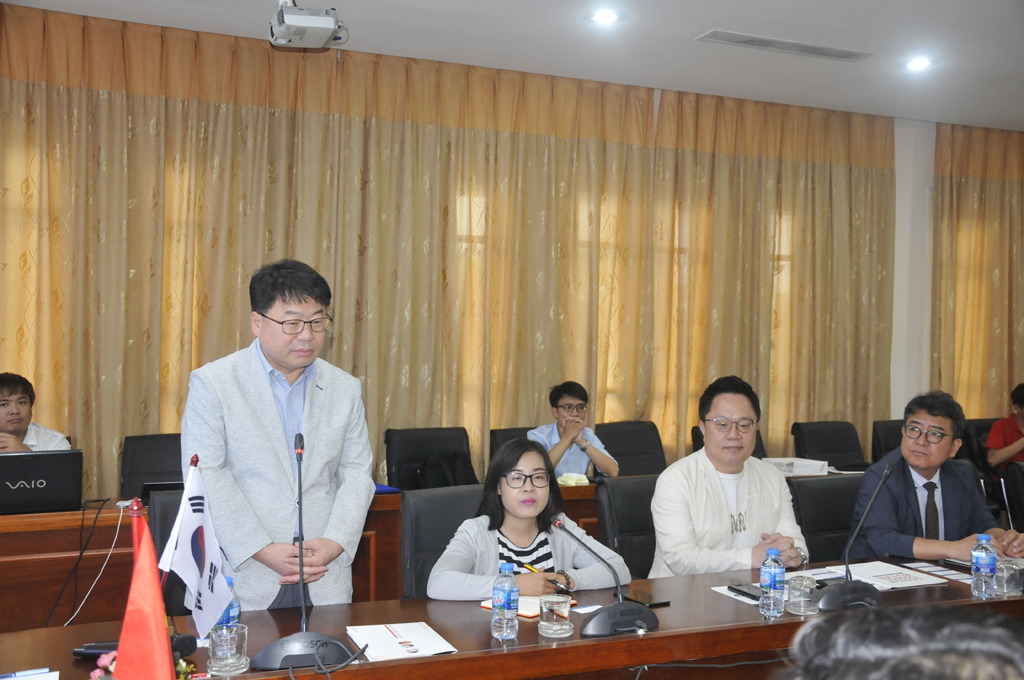 TS. KANG Kyung Tae - Viện trưởng Viện Chấn Hưng thiết kế Pusan ghi nhận tinh thần hợp tác của lãnh đạo HAU và khẳng định sự liên kết giữa hai bên là cần thiết. TS. KANG cũng bày tỏ mong muốn kết hợp cùng HAU phát triển con đường học thuật khớp nối và sẽ làm hết sức để đảm bảo hoạt động hợp tác giữa hai bên đạt hiệu quả cao nhất.