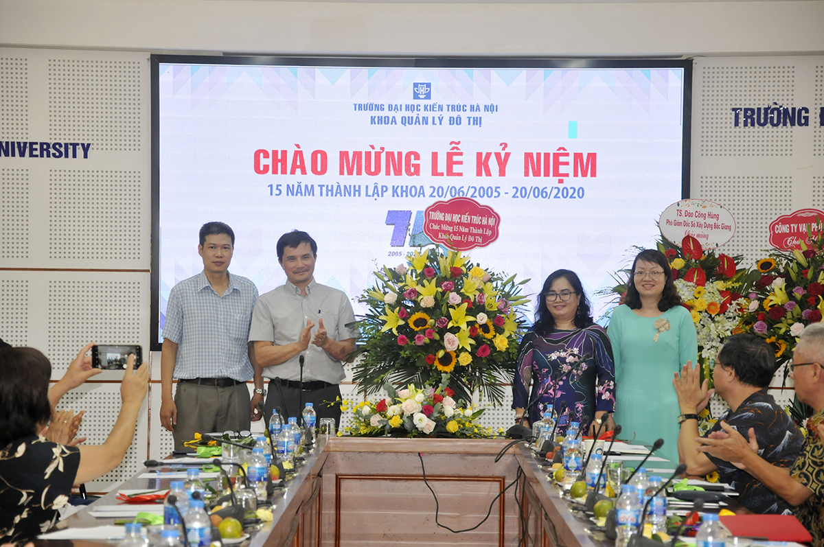 Phát biểu tại Lễ kỷ niệm, PGS.TS.KTS. Lê Quân - Hiệu trưởng Nhà trường biểu dương những thành tích của cán bộ giảng viên và sinh viên Khoa Quản lý đô thị trong 15 năm qua, đáp ứng được với yêu cầu đào tạo nguồn nhân lực chất lượng cao. Những thành tựu đáng ghi nhận không chỉ trong lĩnh vực phát triển đơn vị và xây dựng đội ngũ cán bộ, mà đang ngày càng nâng cao về chất lượng đào tạo, nghiên cứu, mở rộng hợp tác quốc tế, xây dựng thương hiệu và hình ảnh Trường Đại học Kiến trúc Hà Nội trong và ngoài nước.