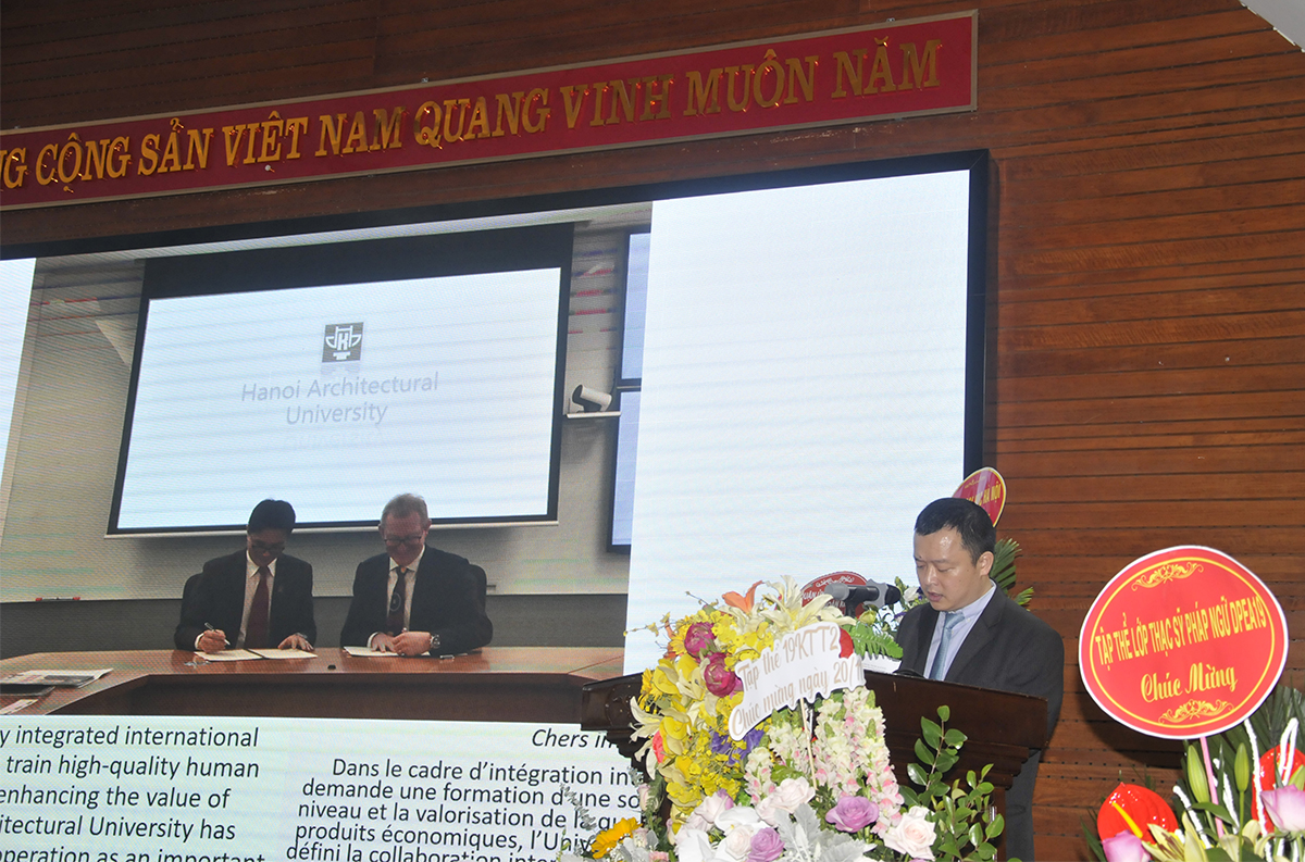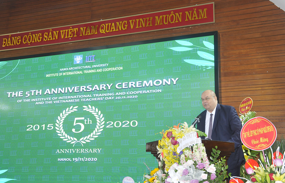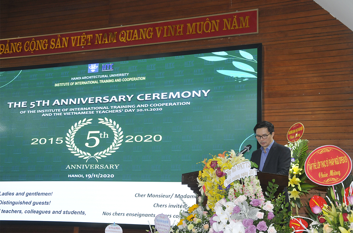 Trong bài diễn văn của mình, Hiệu trưởng Lê Quân khẳng định: Viện Đào tạo và HTQT là một trong các đơn vị còn non trẻ nhưng trong 05 qua đã đạt được nhiều thành quả gắn liền với sự nghiệp đào tạo và giáo dục của Nhà trường, trở thành một trong những động lực phát triển hướng tới hội nhập Quốc tế. Những hoạt động hợp tác Quốc tế của Nhà trường hiện nay đã trở nên thiết thực, hiệu quả, nâng cao uy tín, hình ảnh trên trường Quốc tế, mở ra những hướng hội nhập Quốc tế khác nhau như các chương trình đào tạo liên kết bậc Đại học, Thạc sỹ, Tiến sĩ, hội thảo, workshop, triển lãm, cuộc thi, dự án… Tiếp tục hoàn thiện và đổi mới các chương trình đào tạo hiện có như chương trình tiên tiến ngành Kiến trúc, xây dựng và phát triển các chương trình đào tạo như chương trình liên kết LMD đào tạo từ Cử nhân, Thạc sĩ, Tiến sĩ Pháp ngữ, chương trình Cử nhân Kiến trúc Pháp ngữ DEEA, các chương trình đào tạo liên kết với các Trường Đại học của Mỹ, Úc …, khẳng định được hướng đi đúng đắn của Viện.