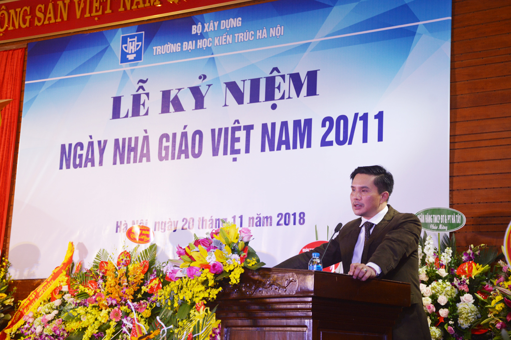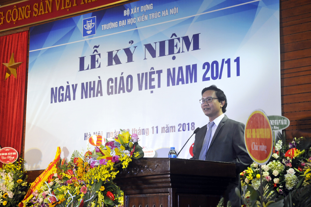 Phát biểu tại buổi lễ, PGS.TS.KTS. Lê Quân nhiệt liệt chúc mừng và bày tỏ sự kính trọng cao nhất tới các nhà giáo lão thành, các thầy cô giáo và toàn thể cán bộ, viên chức, những người đã và đang cống hiến cho sự nghiệp trồng người dưới mái trường Đại học Kiến trúc Hà Nội.