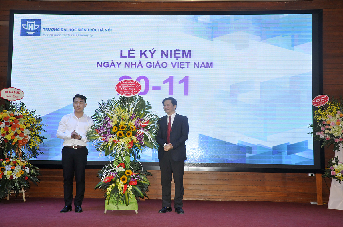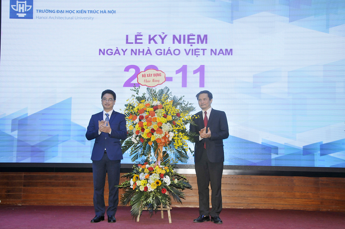 Tới dự buổi Lễ, thay mặt lãnh đạo Bộ Xây dựng, PGS.TS. Vũ Ngọc Anh - Vụ trưởng Vụ KHCN và Môi trường, Bộ Xây dựng đã có những chia sẻ đầy tâm huyết với thầy và trò Nhà trường. Nhân dịp kỷ niệm ngày Nhà giáo Việt Nam, Lãnh đạo Bộ Xây dựng cũng gửi tặng hoa chúc mừng tập thể nhà trường .