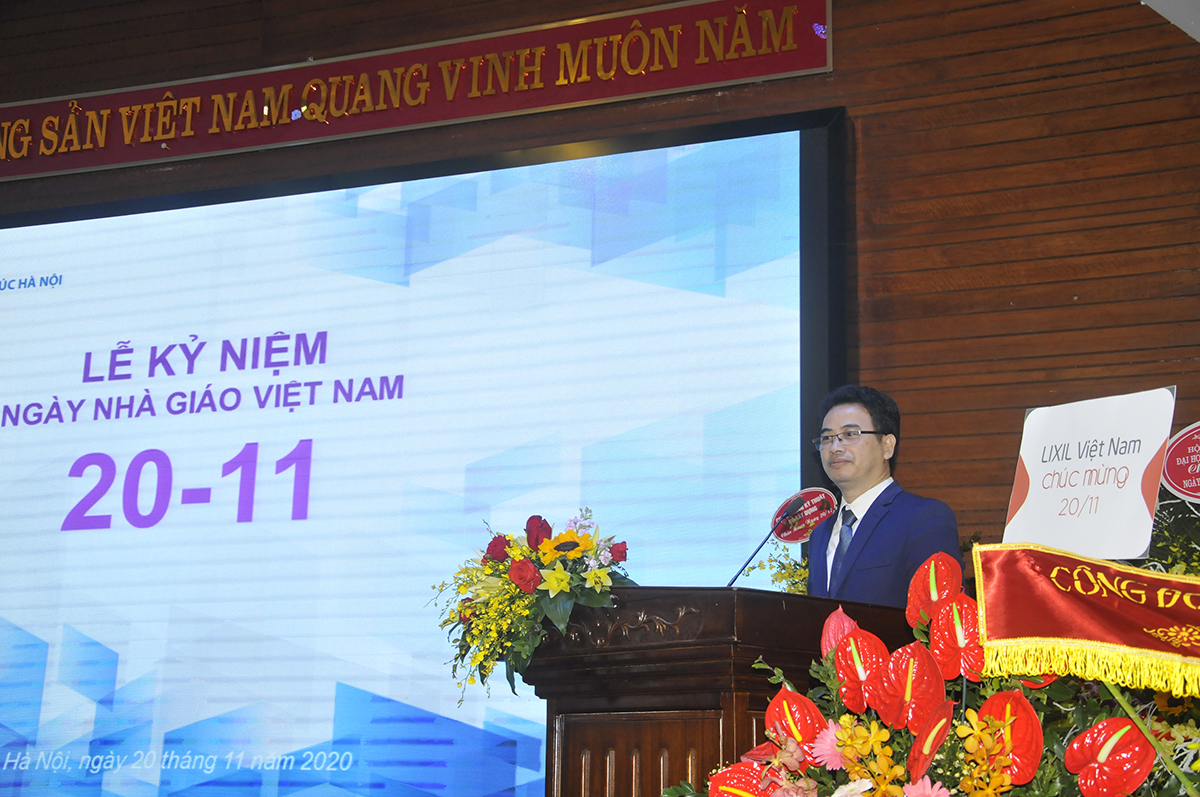 Phát biểu tại buổi lễ, PGS.TS.KTS. Lê Quân - Bí thư Đảng ủy, Hiệu trưởng Nhà trường nhiệt liệt chúc mừng và bày tỏ sự kính trọng cao nhất tới các nhà giáo lão thành, các thầy cô giáo và toàn thể cán bộ, viên chức, những người đã và đang có những cống hiến quan trọng cho sự nghiệp trồng người dưới mái trường Đại học Kiến trúc Hà Nội.