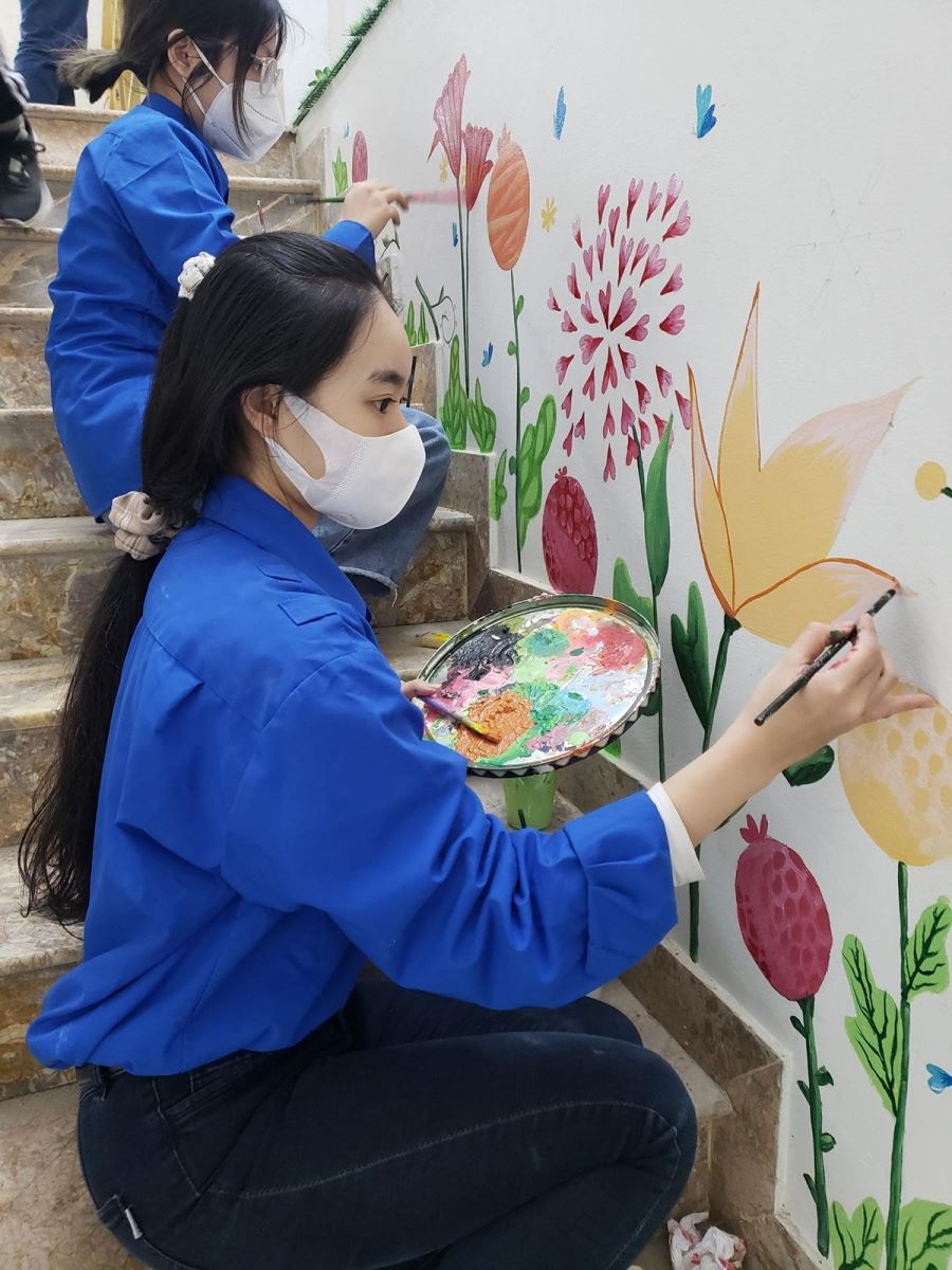 Tất cả với sự nhiệt huyết của mình, các bạn sinh viên tình nguyện HAU đã vẽ nên những bức tranh vui tươi đầy màu sắc, và đây cũng là một trong những hoạt động để chào mừng Tháng Thanh Niên