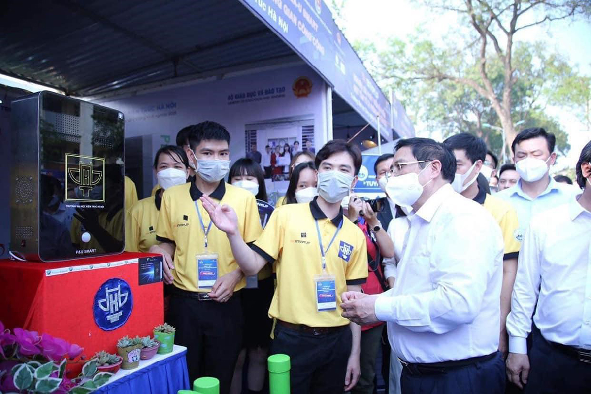 Chiều 26/3, Thủ tướng Phạm Minh Chính đã đến thăm gian hàng sản phẩm của khoa Kỹ thuật hạ tầng và Môi trường Đô thị, Đại học Kiến Trúc Hà Nội.