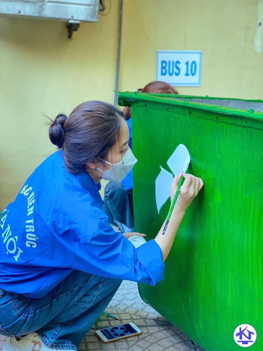 Đội Sinh viên tình nguyện Đại học Kiến Trúc Hà Nội đã vẽ những chiếc áo mới với những họa tiết hình ảnh vô cùng phong phú và đẹp mắt mà vẫn giữ được tính giáo dục trên từng thùng rác và xe rác.