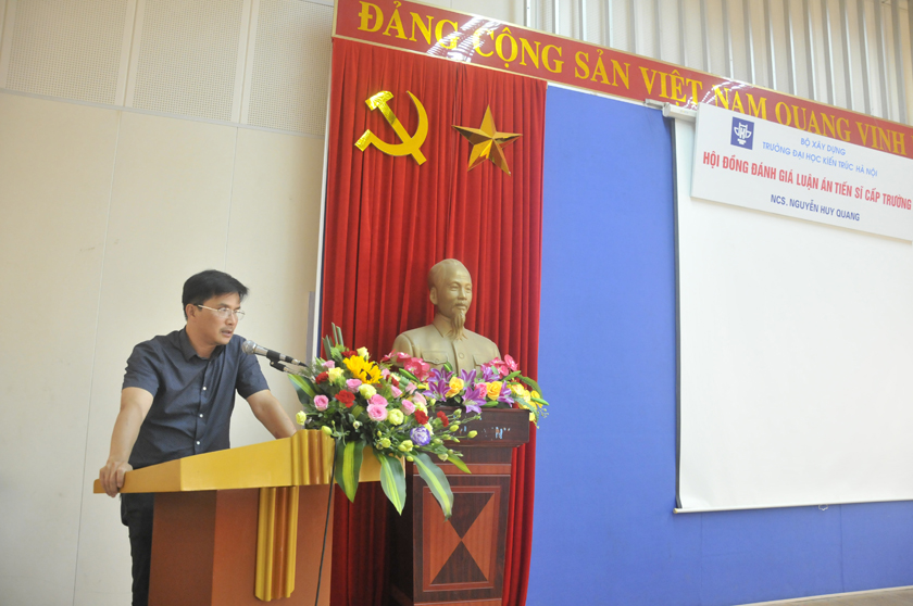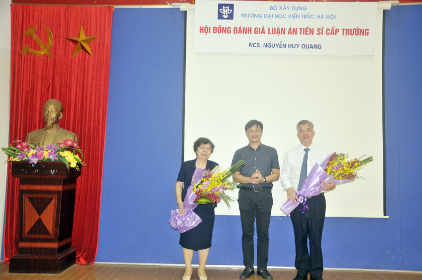 Chiều 23/05/2017 tại Trường Đại học Kiến trúc Hà Nội, Hội đồng chấm Luận án Tiến sĩ cấp Trường đã tổ chức buổi bảo vệ Luận án Tiến sĩ chuyên ngành Quản lý đô thị và Công trình cho nghiên cứu sinh Nguyễn Huy Quang với đề tài: “Quản lý chất thải rắn sinh hoạt của các đô thị loại I vùng Trung Du, miền núi Bắc Bộ - Việt Nam (Lấy thành phố Thái Nguyên làm địa bàn nghiên cứu áp dụng)”, mã số 62.58.01.06 do PGS.TS.Vũ Thị Vinh hướng dẫn.
