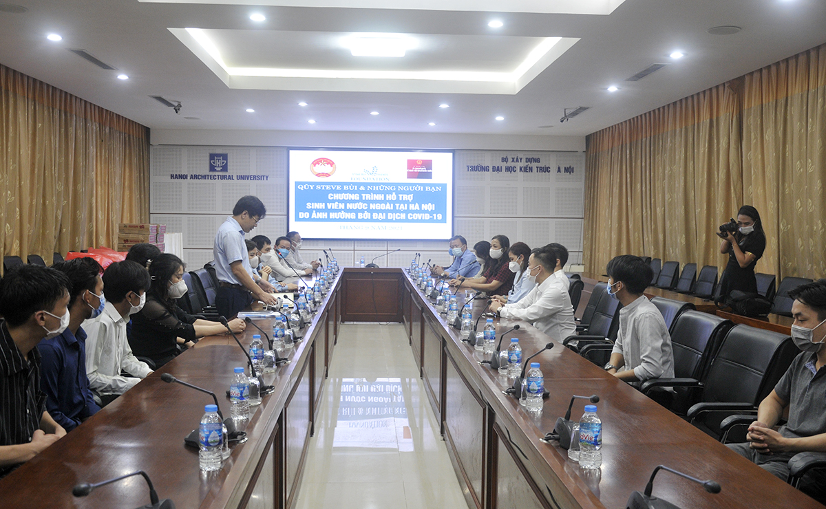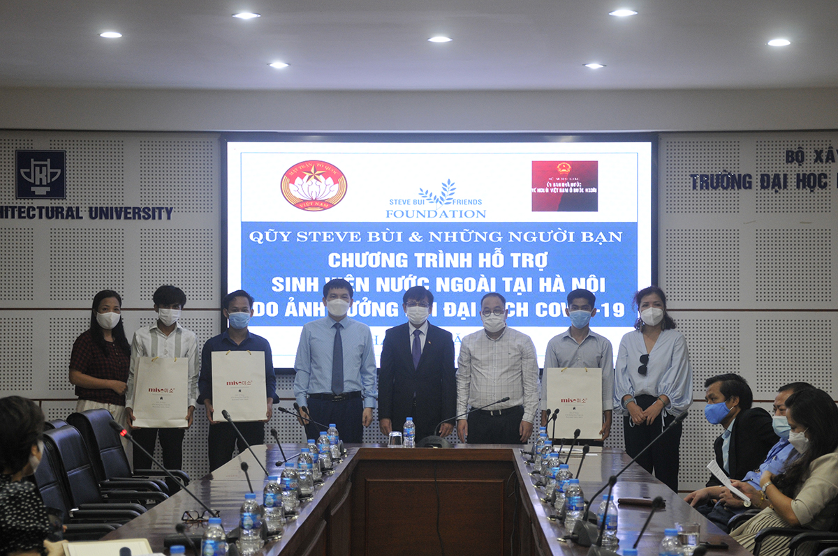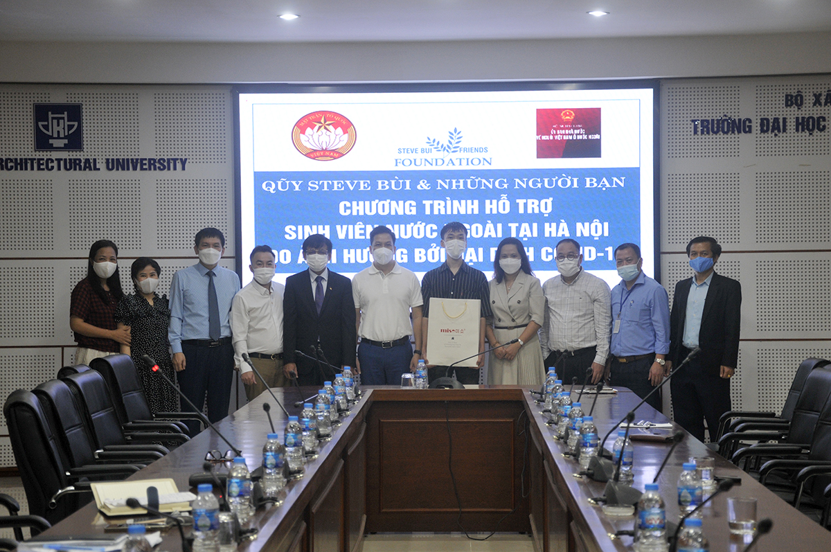 Thay mặt Nhà trường, PGS.TS.KTS. Nguyễn Tuấn Anh - Phó Hiệu trưởng gửi lời cảm ơn tới quỹ Steve Bui cùng đoàn đã quan tâm, động viên và giúp đỡ các em lưu sinh viên đang học tập tại Trường Đại học Kiến trúc Hà Nội trong thời điểm khó khăn này. Việc làm của quỹ Steve Bùi và những người bạn rất đúng lúc, đúng thời điểm, rất ý nghĩa với sinh viên Quốc tế để các em yên tâm sinh sống và học tập.