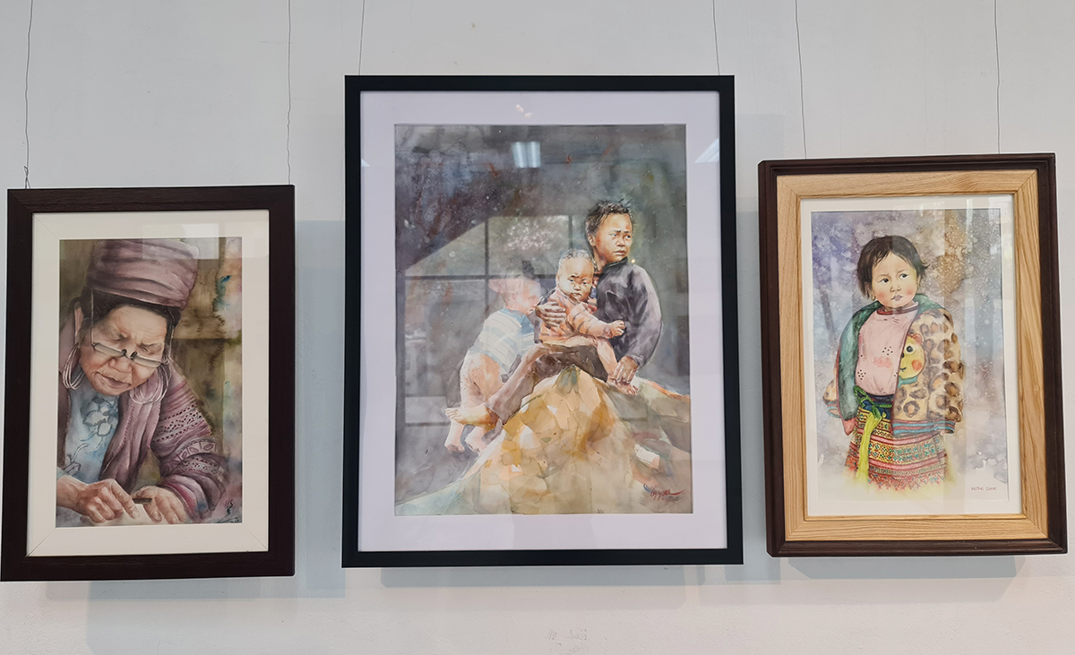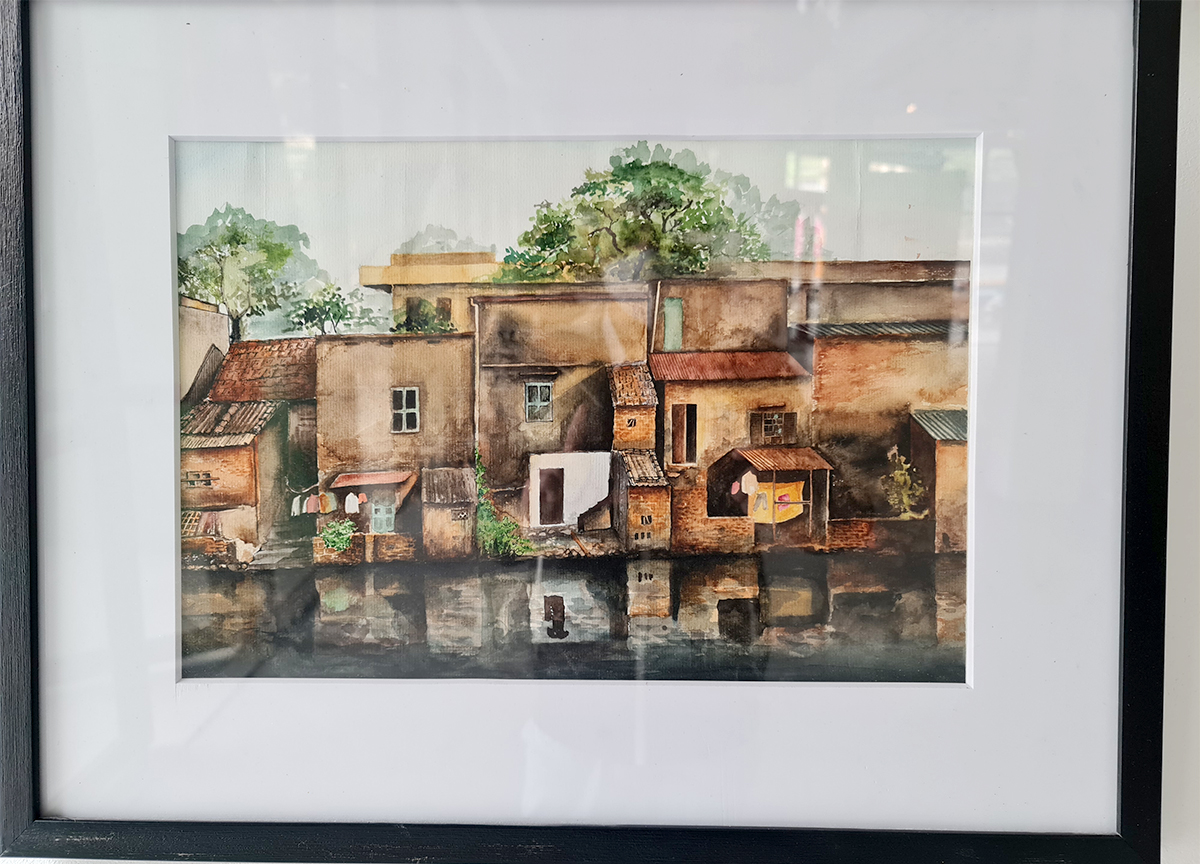 Tác giả Nguyễn Thị Nguyễn Thị Hương Giang (Lớp 19NT6, ngành Thiết kế Nội thất) mang đến Triển lãm tác phẩm Đông ấm bằng chất liệu màu nước trên giấy canson.
