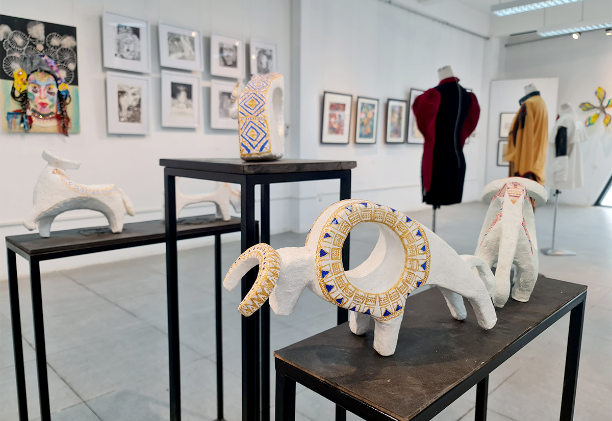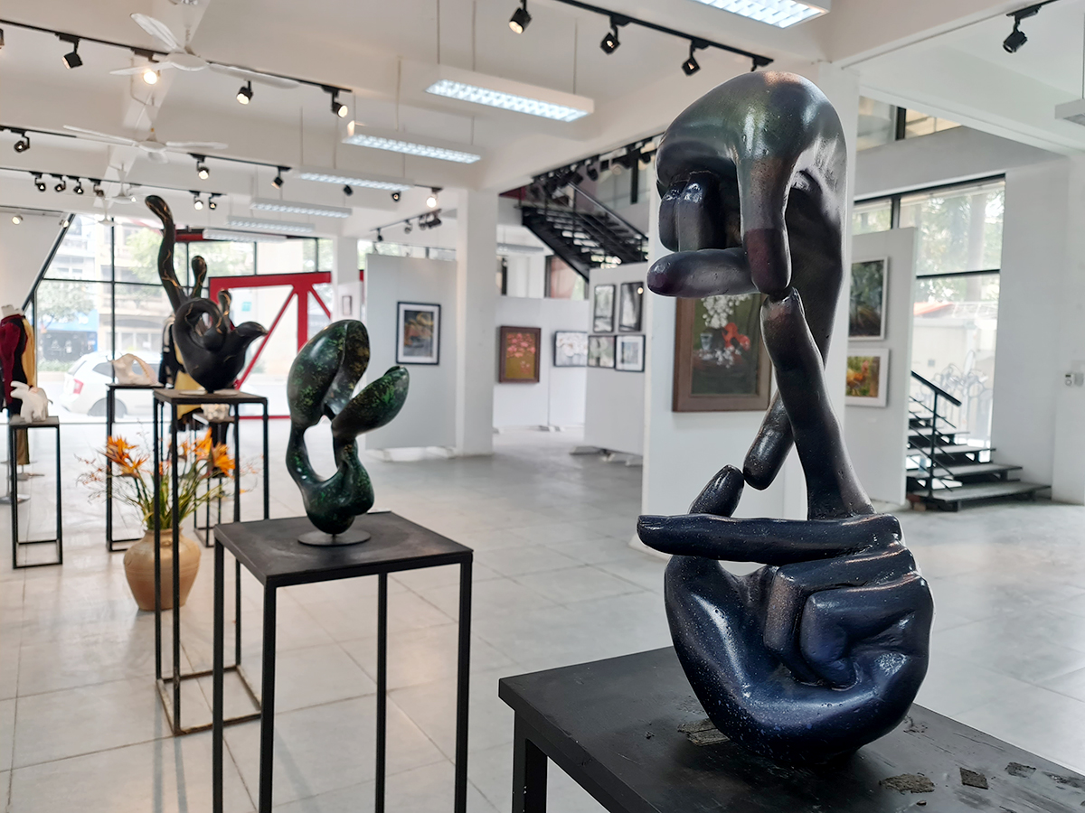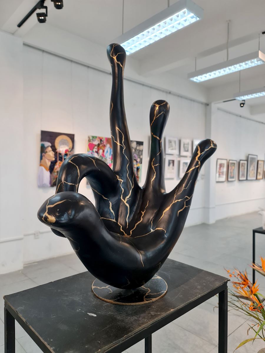 Tác giả Đỗ Thị Thanh Hải (Lớp 19DK, chuyên ngành Điêu khắc) với tác phẩm vết nứt được trưng bày tại triển lãm, chia sẻ: “Tình hình dịch bệnh căng thẳng, tính chất của chuyên ngành điêu khắc phải thực hành trực tiếp, thật may nhà trường đã tạo điều kiện để chúng mình được thực hiện đồ án tại Xưởng riêng với các quy định phòng chống dịch cẩn thận, kỹ càng. Tác phẩm cũng là một trong số những đồ án mình đã, đang thực hiện dưới sự trợ giúp và góp ý từ các thầy cô giảng viên chuyên ngành”.