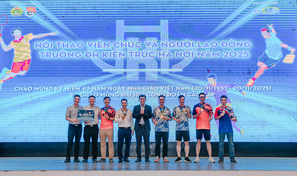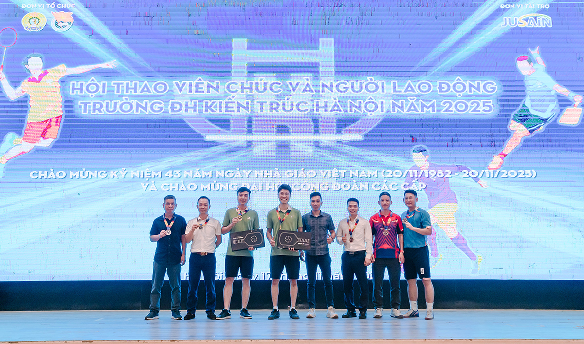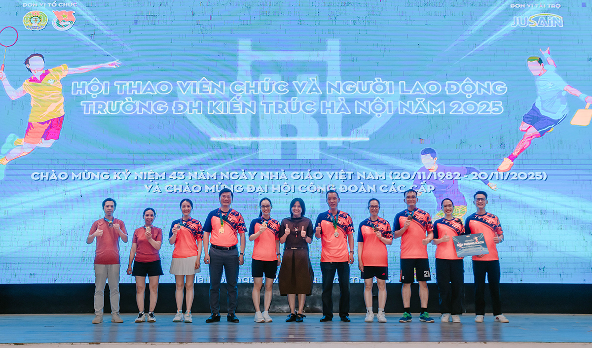 Sau gần một tuần tranh tài sôi nổi, hấp dẫn với các nỗ lực cống hiến hết mình của vận động viên và đặc biệt là sự cổ vũ nhiệt tình của các cổ động viên, Hội thao chào mừng kỷ niệm 43 năm ngày Nhà giáo Việt Nam (20/11/1982 - 20/11/2025) và chào mừng Đại hội Công đoàn các cấp Trường Đại học Kiến trúc Hà Nội đã thành công tốt đẹp.