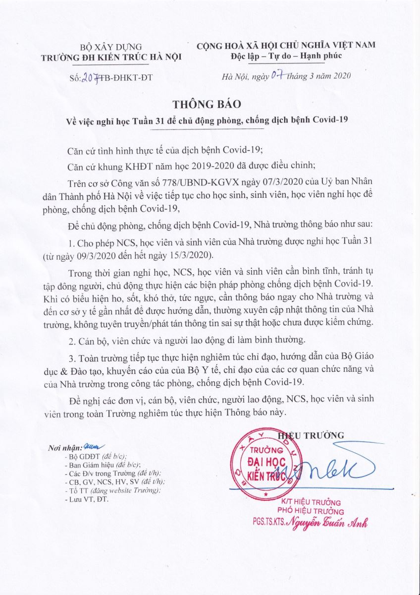 Số: 207/TB-ĐHKT-ĐT ngày 07 tháng 3 năm 2020