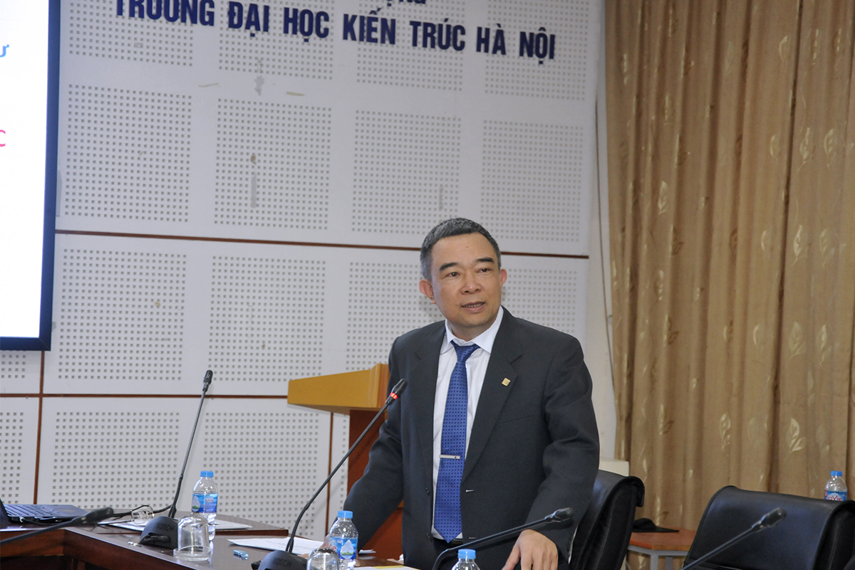 PGS.TS.KTS Lê Quân - Hiệu trưởng Nhà trường phát biểu tại tọa đàm