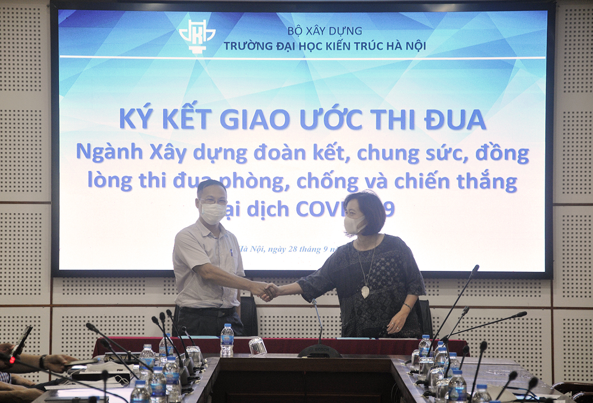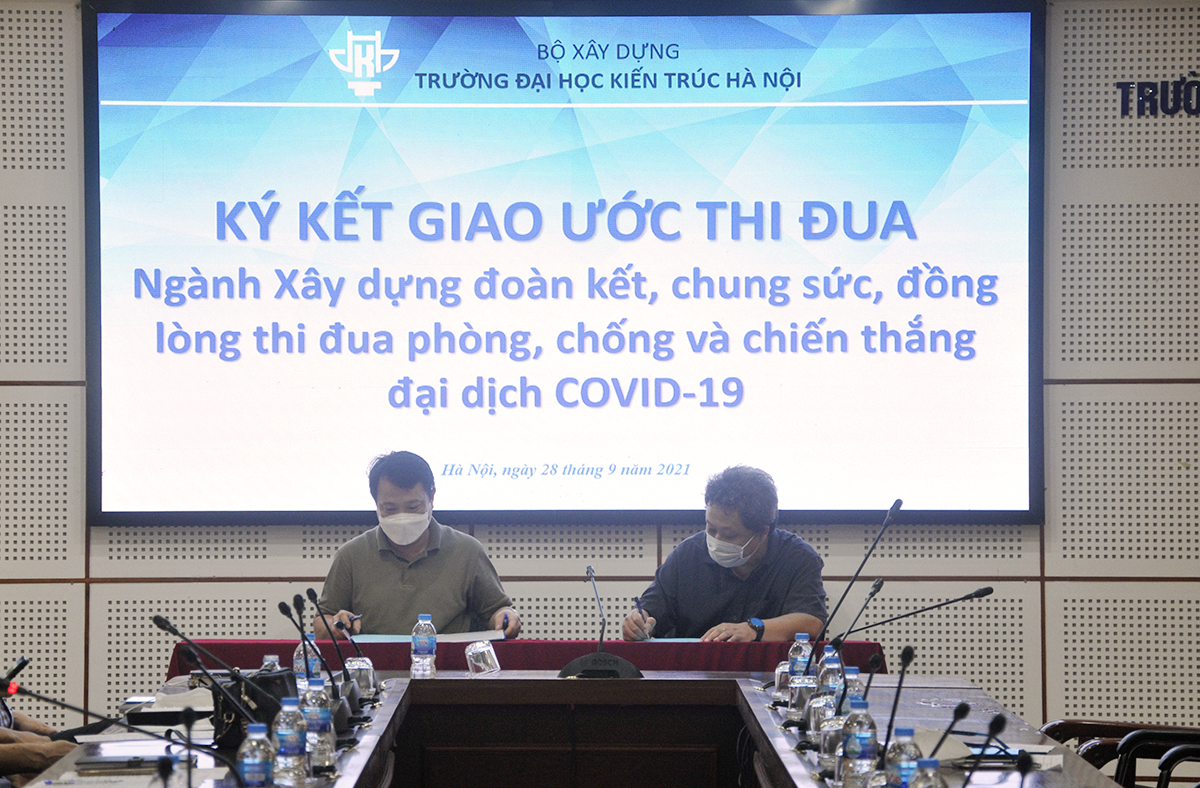 *Cũng sáng cùng ngày đã diễn ra Lễ ký kết giao ước thi đua với chủ đề "Ngành xây dựng đoàn kết, chung sức, đồng lòng thi đua phòng chống và chiến thắng đại dịch Covid-19". PGS.TS.KTS. Lê Quân - Bí thư Đảng uỷ, Hiệu trưởng Nhà trường chủ trì và phát động phong trào.