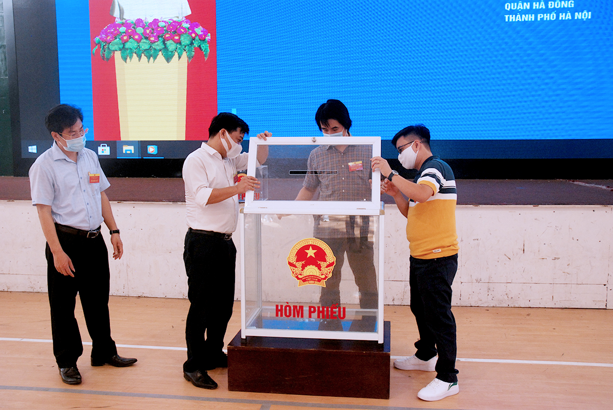 Hoạt động bỏ phiếu diễn ra nghiêm túc, đảm bảo quy định phòng dịch