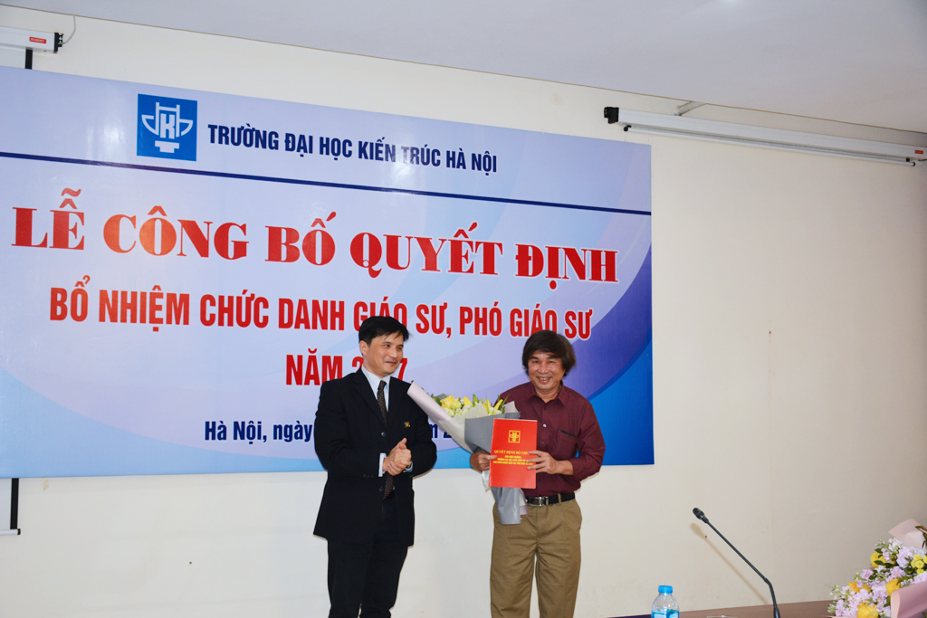 Ngày 05/3/2018, Hội đồng Chức danh Giáo sư nhà nước ban hành Quyết định số 06/QĐ-HĐCDGSNN công nhận đạt tiêu chuẩn chức danh Giáo sư, Phó giáo sư năm 2017. Trường Đại học Kiến trúc Hà Nội có 10 nhà giáo được công nhận đạt chuẩn chức danh Giáo sư, Phó Giáo sư đợt này (trong đó có 01 Giáo sư và 09 Phó Giáo sư).