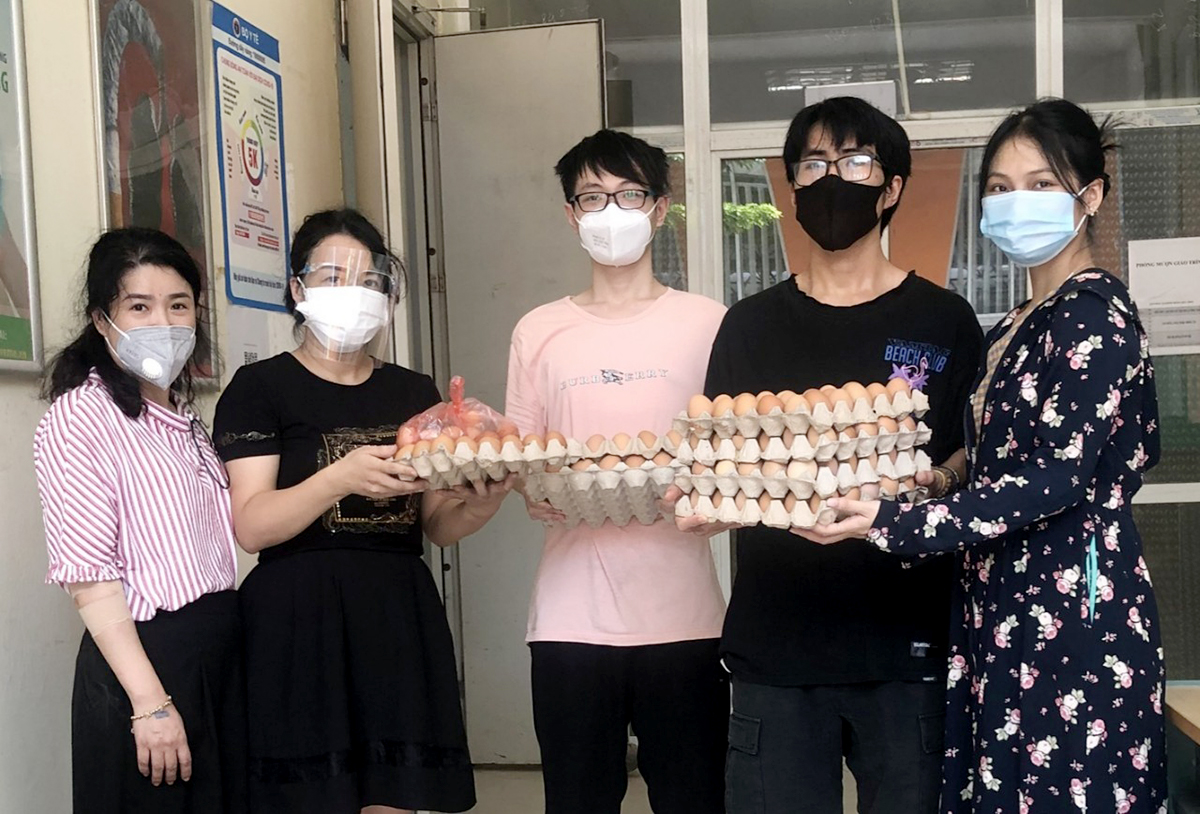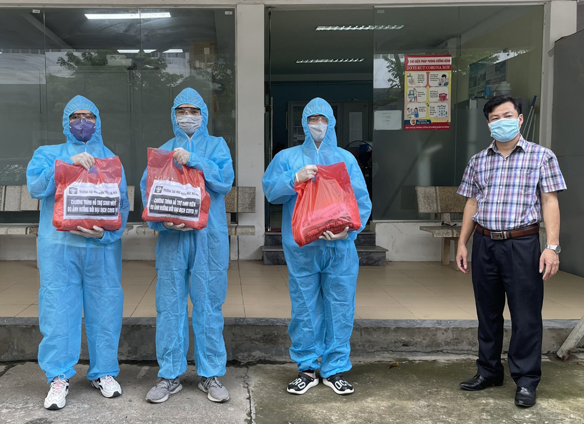 Tính đến thời điểm hiện tại, Nhà trường đã hỗ trợ hơn 1.066 phần quà cho các em sinh viên. Với những thực phẩm tươi sống, khó vận chuyển, Ban quản lý ký túc xá và các tình nguyện viên đã nấu hơn 300 suất ăn cho sinh viên đang ở trong ký túc xá.