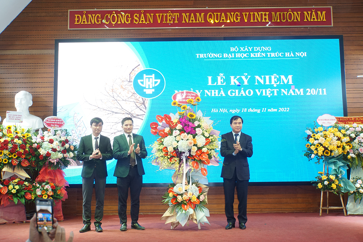 Thay mặt lãnh đạo Bộ Xây dựng, Thứ trưởng Lê Quang Hùng đã có những phát biểu chúc mừng các thầy cô giáo nhân ngày Nhà giáo Việt Nam 20/11. Thứ trưởng cũng đã có những chia sẻ đầy tâm huyết với thầy trò Nhà trường và nhấn mạnh: Với bề dày truyền thống lịch sử hơn 50 năm, tập thể lãnh đạo, cán bộ, giảng viên, sinh viên Đại học Kiến trúc Hà Nội luôn đoàn kết, sáng tạo, nỗ lực phấn đấu, đạt được nhiều thành tích toàn diện trên các mặt công tác. Mặc dù trong hoàn cảnh khó khăn chung của dịch bệnh trong những năm qua, Nhà trường vẫn hoàn thành xuất sắc mọi chỉ tiêu và nhiệm vụ đề ra, vượt qua nhiều Trường Đại học trên địa bàn.