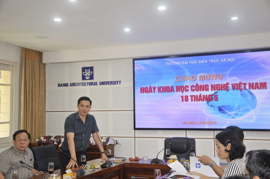 Thay mặt Đảng ủy, Ban giám hiệu Nhà trường, PGS.TS.KTS. Lê Quân ghi nhận và biểu dương sự nỗ lực, cố gắng và những kết quả nổi bật trong lĩnh vực khoa học và công nghệ của Nhà trường trong thời gian qua, đặc biệt là sự chuyển biến rõ nét về nhận thức và trách nhiệm trong thực hiện các nhiệm vụ khoa học, công nghệ của các nhà khoa học, các cán bộ, giảng viên, học viên và sinh viên trong toàn trường. Hiệu trưởng mong rằng công tác quản lý về khoa học công nghệ của trường tiếp tục được nâng cấp và hoàn thiện, đáp ứng yêu cầu thực hiện các nhiệm vụ khoa học, công nghệ, góp phần nâng cao chất lượng giáo dục - đào tạo và uy tín của Trường Đại học Kiến trúc Hà Nội.