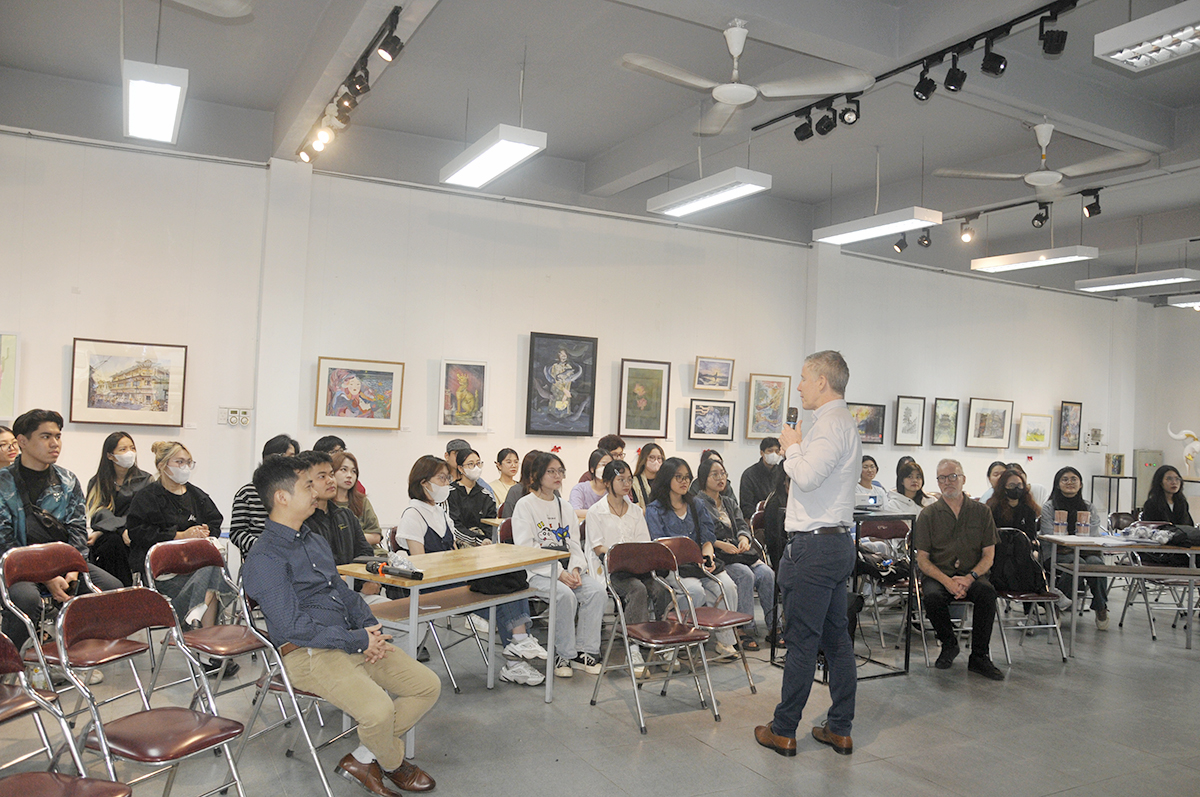 *Sau buổi làm việc, GS. Andrew Wallace đã có buổi nói chuyện chuyên đề “Sử dụng các đồ vật và trải nghiệm hàng ngày để tưởng tượng về không gian” với sinh viên Chương trình Tiên tiến tại tầng 1 - Tòa nhà Art Garlery, Trường Đại học Kiến trúc Hà Nội.