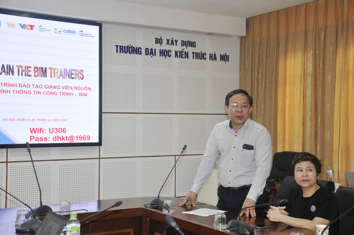 Phát biểu tại khóa học, PGS.TS. Lê Anh Dũng - Phó Hiệu trưởng Trường Đại học Kiến trúc Hà Nội đã chỉ ra tầm quan trọng, tính cấp thiết và mục tiêu nhiệm vụ của đề án. Với mong muốn sau khóa tập huấn, Nhà trường sẽ có đội ngũ giảng viên nguồn nắm bắt công nghệ BIM, đón đầu các yêu cầu mới của doanh nghiệp trong hoạt động xây dựng và quản lý vận hành.