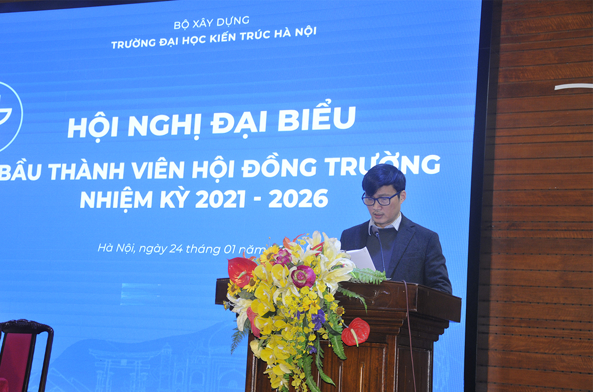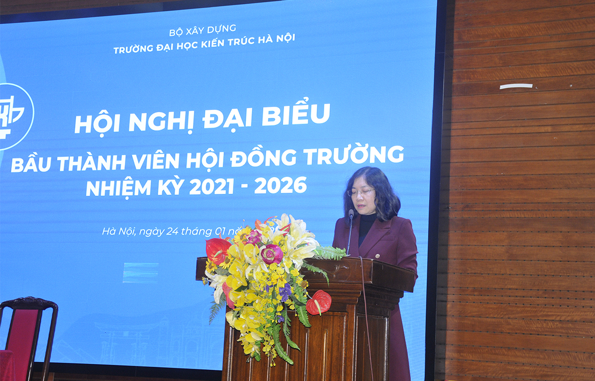 Phát biểu tại Hội nghị, đồng chí Nguyễn Thị Thanh Hằng - Phó Vụ Trưởng Vụ Tổ chức Cán bộ, Bộ Xây dựng đánh giá Trường Đại học Kiến trúc Hà Nội đã chủ động tổ chức Hội nghị theo đúng các quy định,quy trình của Luật sửa đổi, bổ sung một số điều của Luật Giáo dục Đại học, của Bộ Xây dựng và phương án thành lập Hội đồng trường đã được Bộ Xây dựng phê duyệt; đảm bảo yêu cầu thực tiễn của Nhà trường là thành lập Hội đồng trường nhiệm kỳ 2021-2026 đúng quy định. Việc triển khai Hội nghị là bước quan trọng nhằm xác định các thành viên tham gia Hội đồng trường theo cơ cấu: Đại diện giảng viên, đại diện viên chức và người lao động, đại diện cộng đồng xã hội. Từ đó phát huy được vai trò của Hội đồng trường trong đổi mới giáo dục đại học.