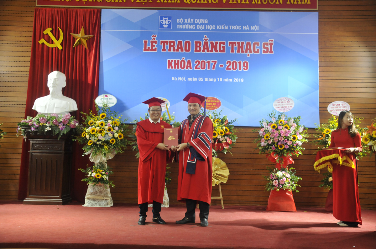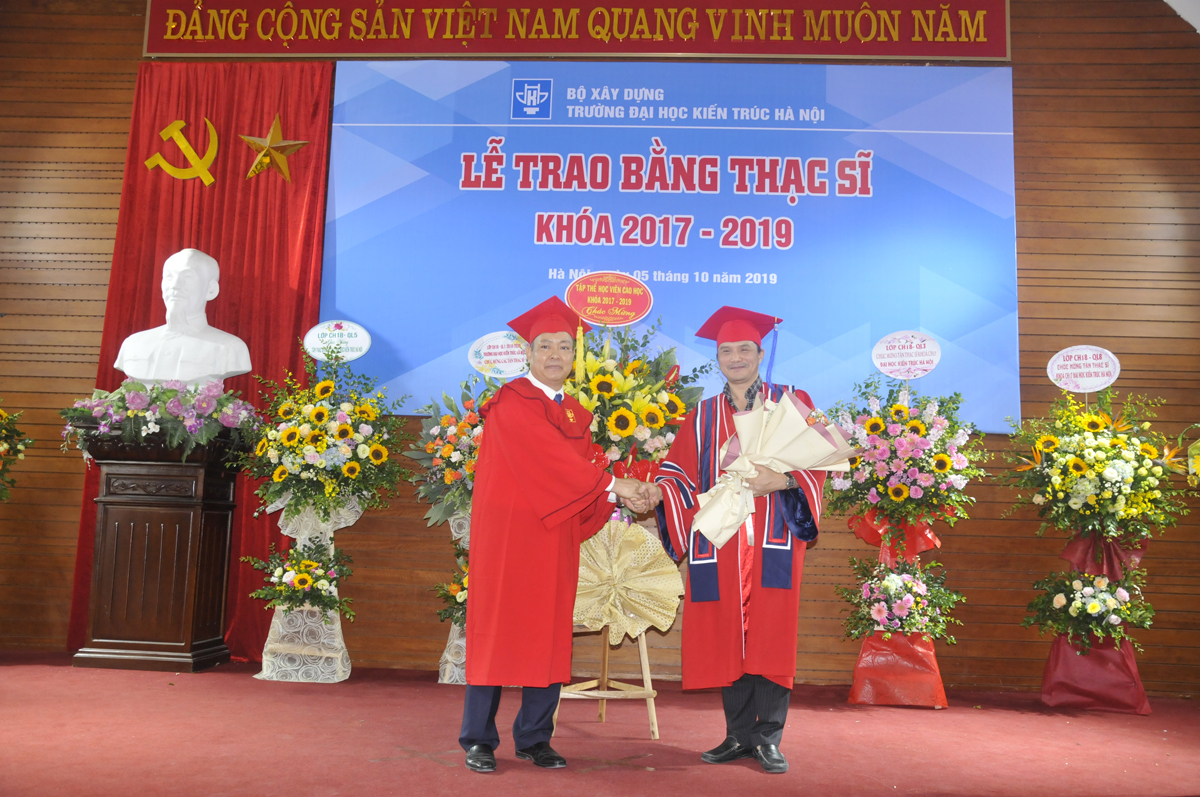 Tới dự buổi lễ có PGS.TS.KTS. Lê Quân - Bí thư Đảng ủy, Hiệu trưởng Nhà trường; TS.KTS. Ngô Thị Kim Dung- Phó Bí thư Đảng ủy, Phó Hiệu trưởng Nhà trường; PGS.TS. Lê Anh Dũng - Phó Hiệu trưởng và PGS.TS. Nguyễn Tuấn Anh - Phó Hiệu trưởng. Dự buổi lễ còn có các thầy giáo, cô giáo lãnh đạo các đơn vị; các nhà khoa học và đặc biệt là các tân Thạc sĩ cùng gia đình, bạn bè và đồng nghiệp.